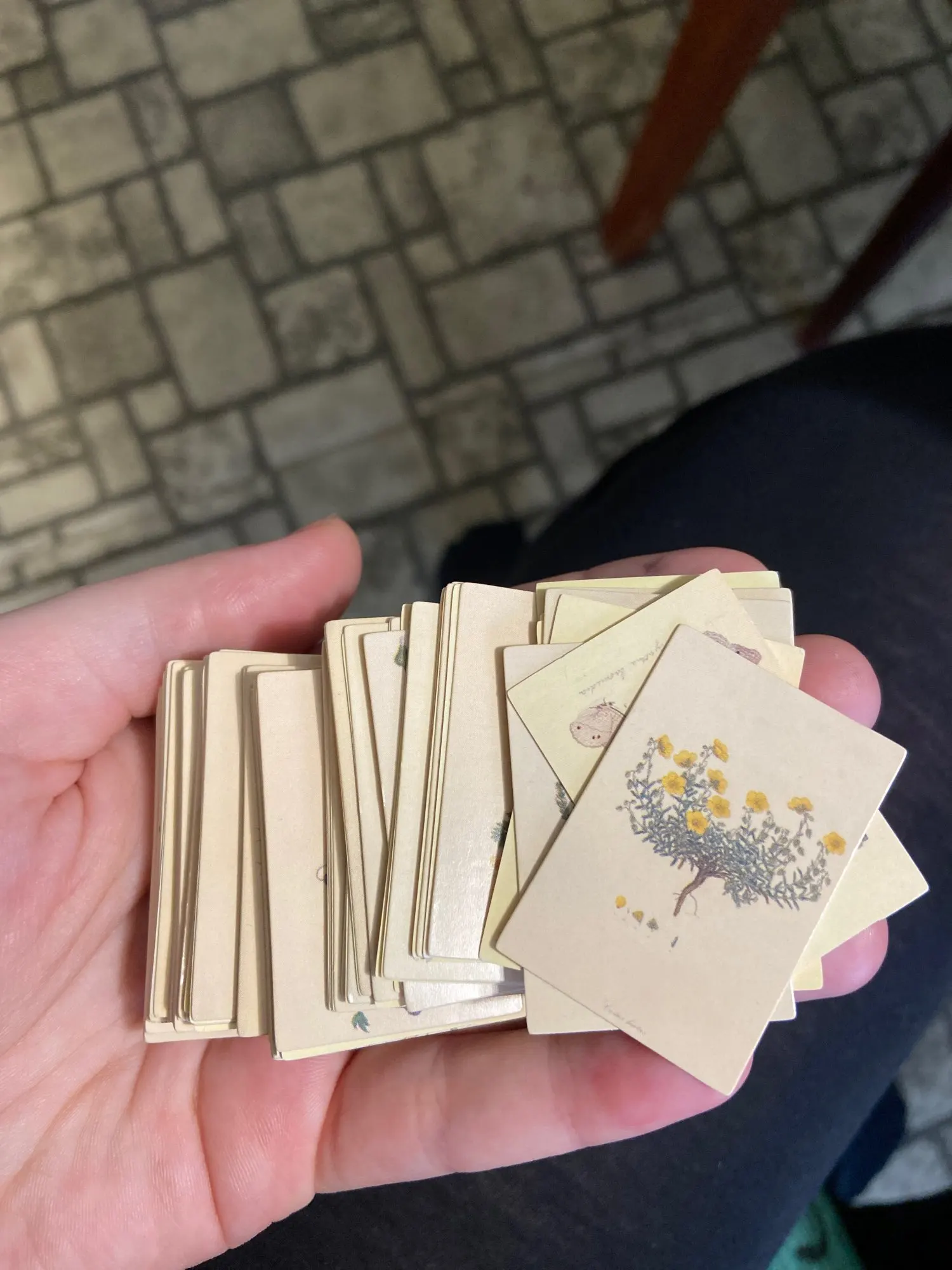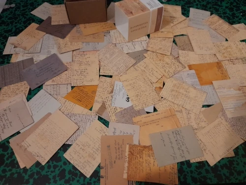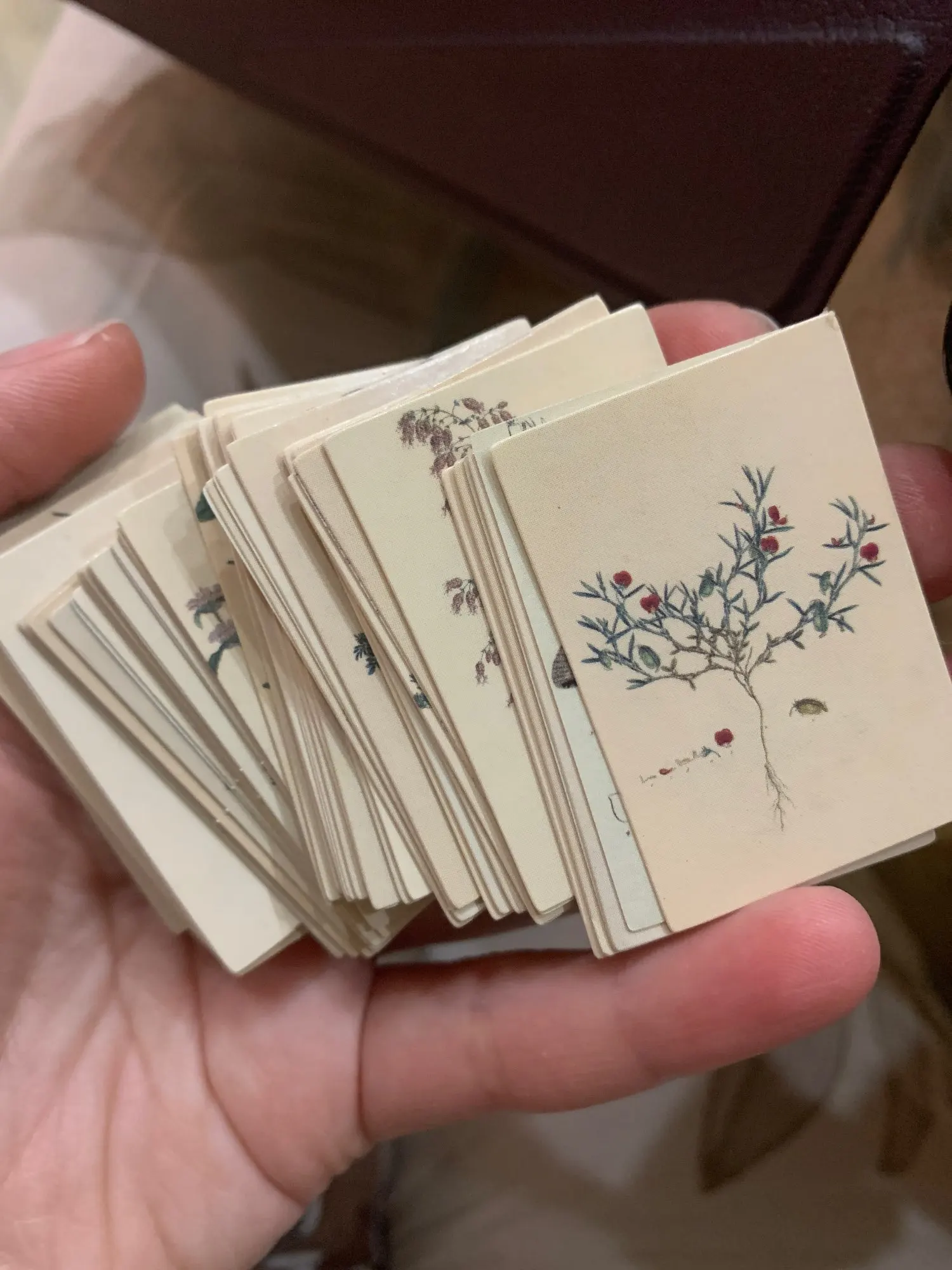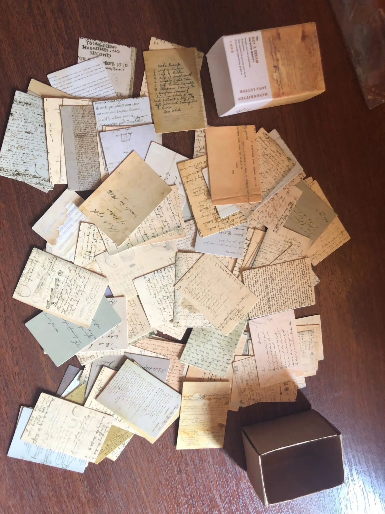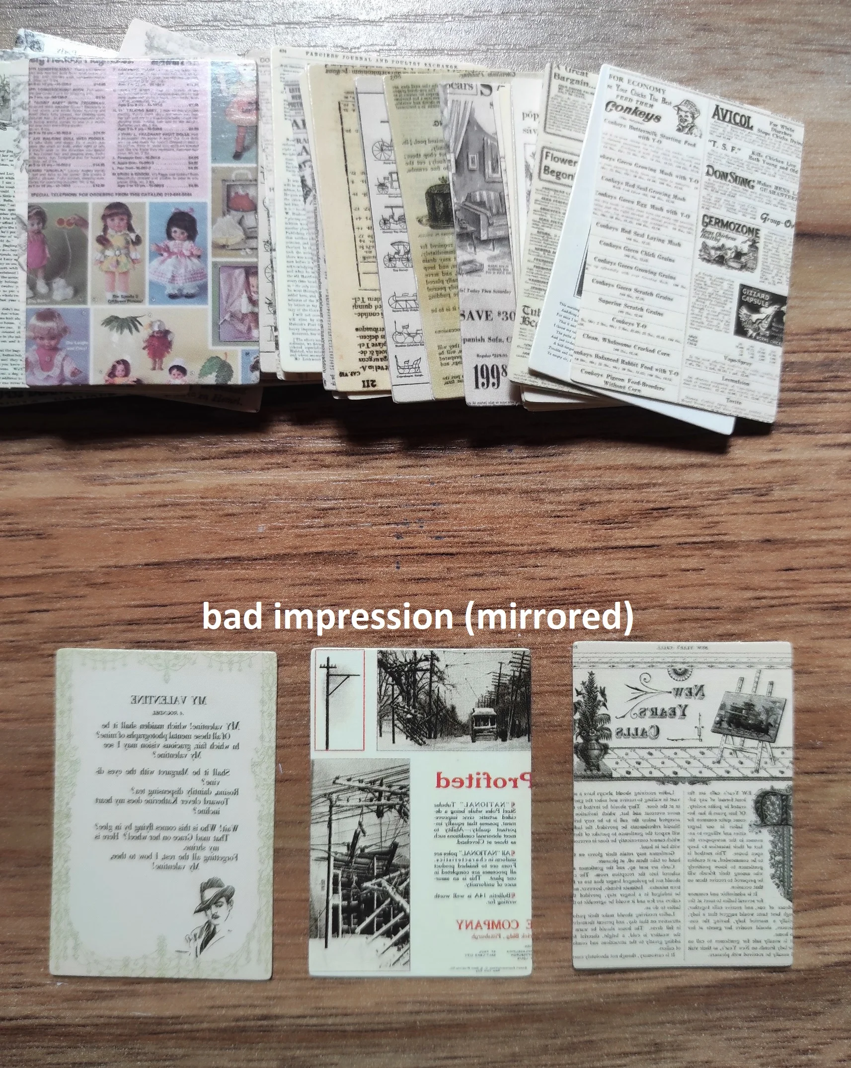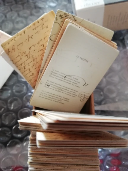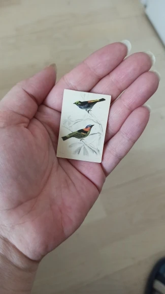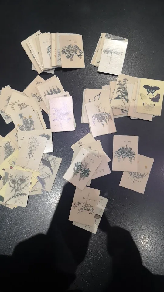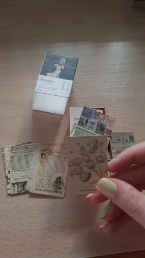 Крошечные 30х44мм картонные карточки. В наборе "Handwritten love letter" - изображение старых рукописных текстов с двух сторон. В наборе " Forest Image", на одной стороне карточки - растение, на другой - птицы или насекомые. Бумага плотная, как картон, полуглянцевые. Очень классные, но такие маленькие