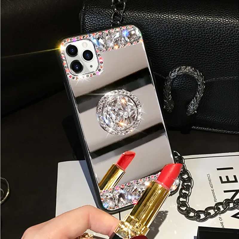 Зеркальный женский чехол со стразами для макияжа iPhone 11 12 13 Pr...