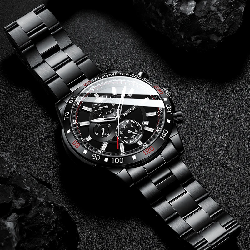 Мужские водонепроницаемые кварцевые часы BELUSHI, из нержавеющей стали, с хронографом