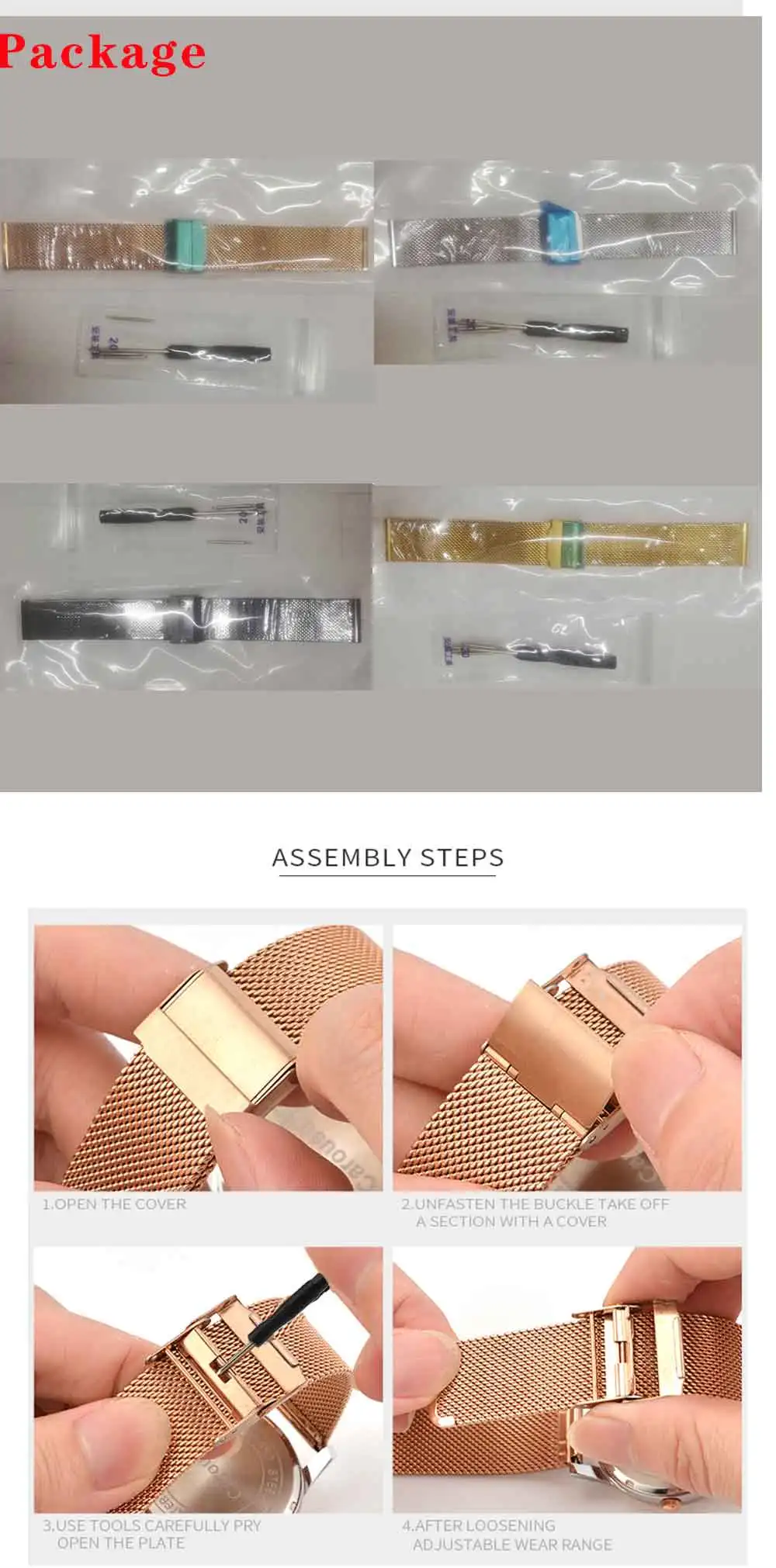 16 мм 18 мм 20 мм 22 мм Универсальный Milanese ремешок для часов Qu...