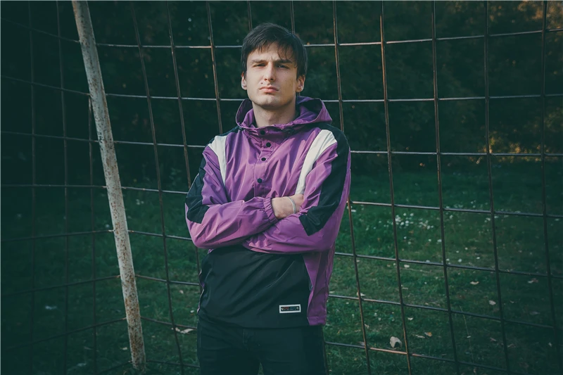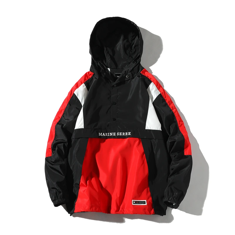 Ветровка мужская с капюшоном в стиле хип-хоп, повседневное винтажно...