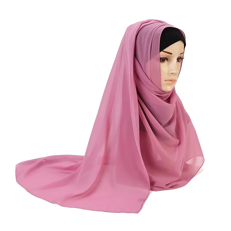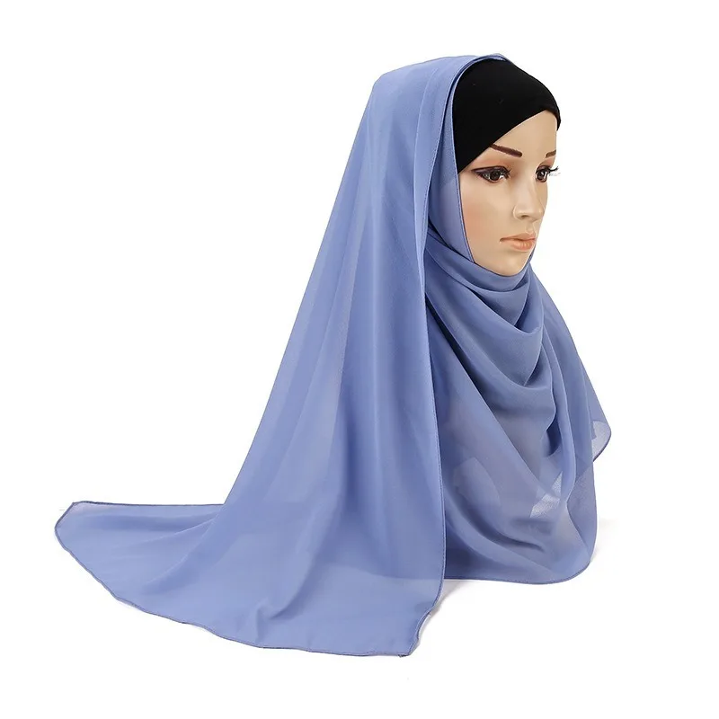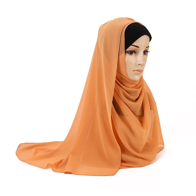Шифоновый хиджаб для мусульманских женщин, однотонный головной плат...