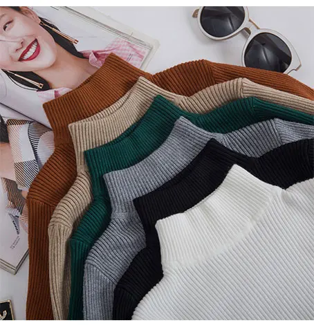 Женский трикотажный свитер, элегантный однотонный облегающий пуловер с длинным рукавом и высоким воротником, одежда в Корейском стиле для зимы, 2020