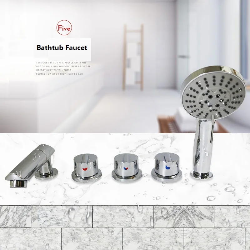 Смеситель для ванны из латуни, 5 отверстий, регулирующий клапан для горячей и холодной воды, набор из 5 предметов