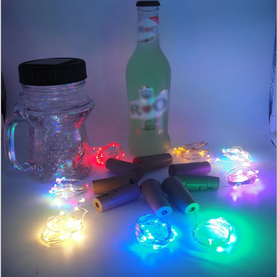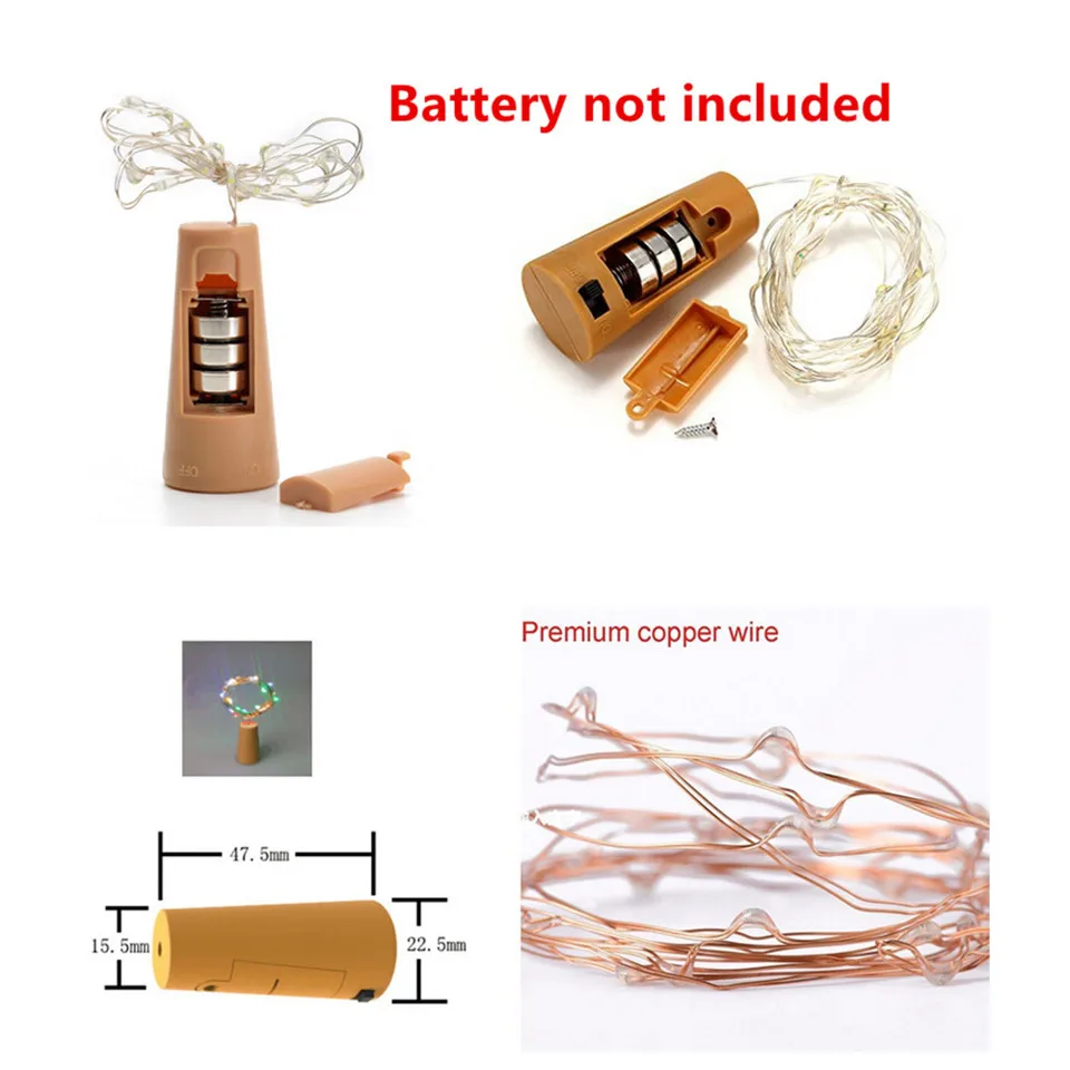 Гирлянда светодиодная, 2 м, 20 светодиодов, светильники в форме винных бутылок светодиодов, со встроенным аккумулятором, в форме пробки серебристый медный провод, цветная Сказочная мини-гирлянда