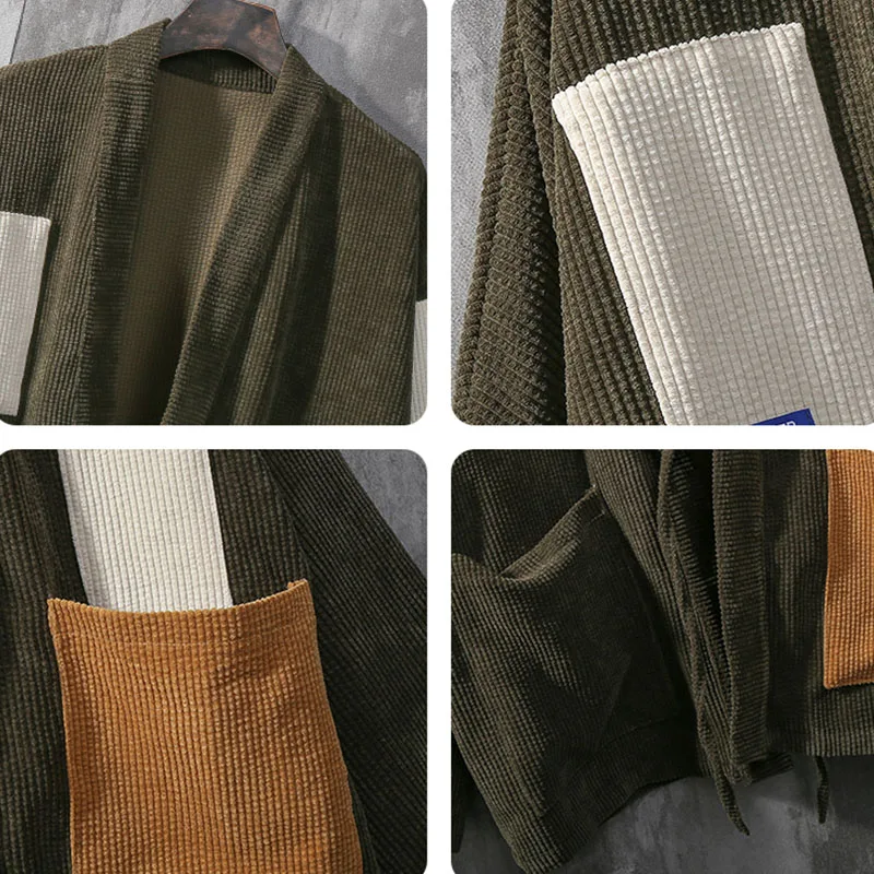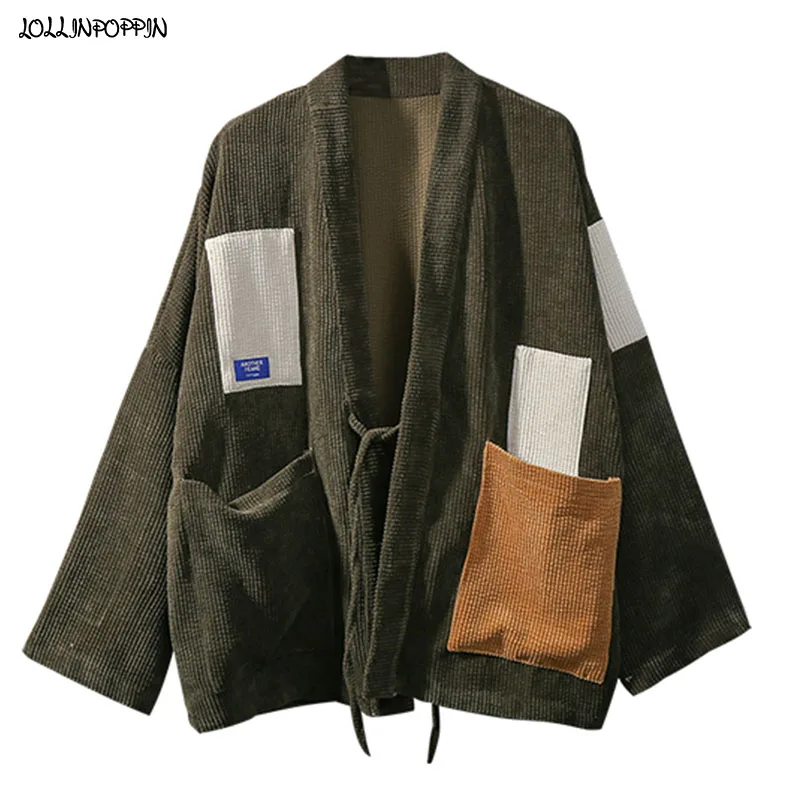 Мужское вельветовое кимоно, свободное тонкое пальто в японском стиле, с заплатками