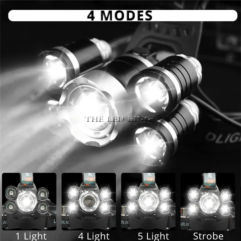 Самый яркий светодиодный налобный фонарь 40000LM, USB, перезаряжаемый, 4 режима, светодиодный фонарик, 7 светодиодов, налобный фонарь, водонепроницаемый фонарик для кемпинга