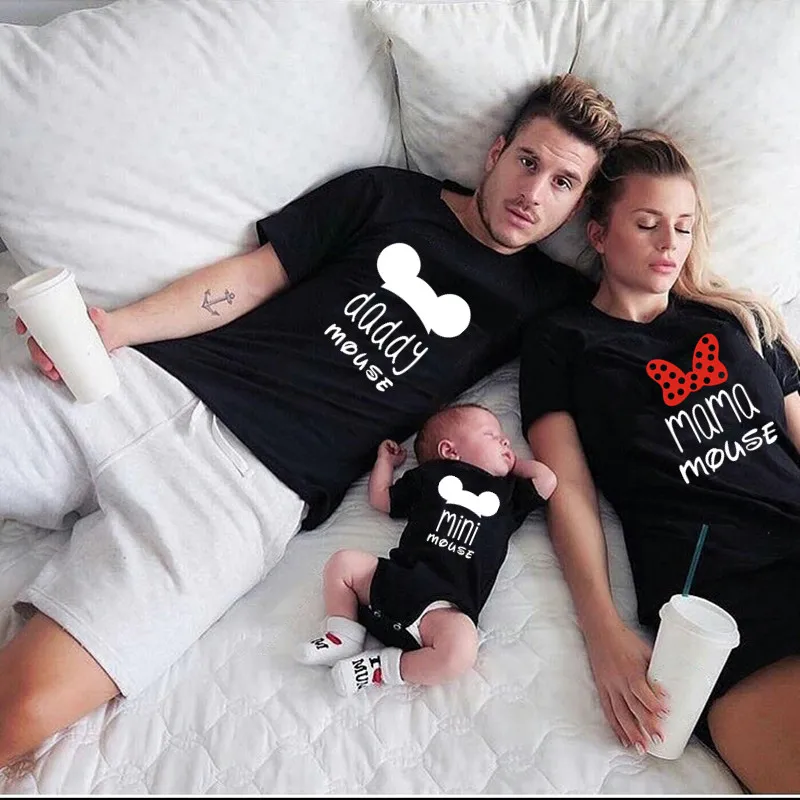 Топы с коротким рукавом, черные, для отца, матери, ребенка