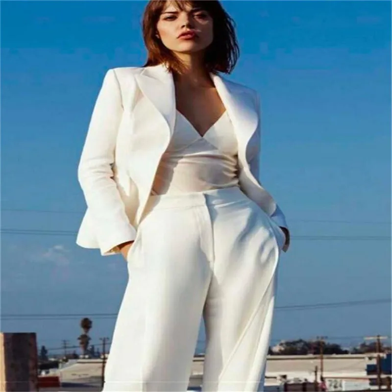 Костюм женский деловой с лацканами, костюм-двойка белого цвета, деловой костюм, Офисная формальная униформа, одежда для работы, Блейзер, одежда на заказ