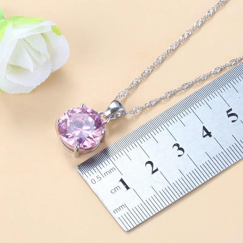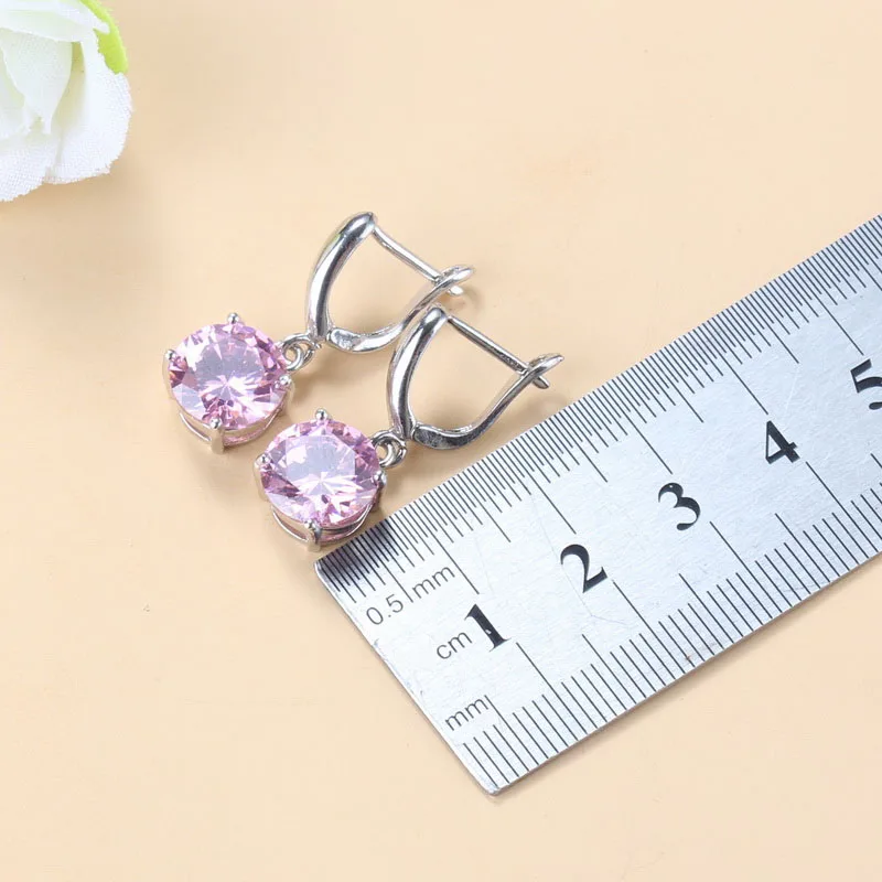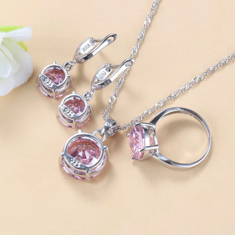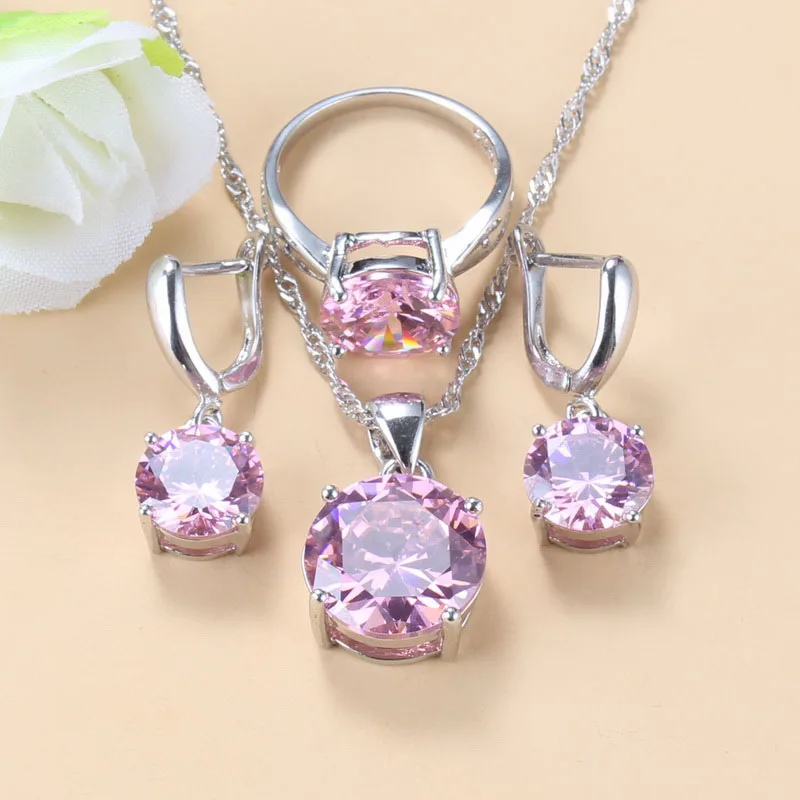 Комплект ювелирных украшений из серебра 925 пробы, Круглые, розовые, с фианитами
