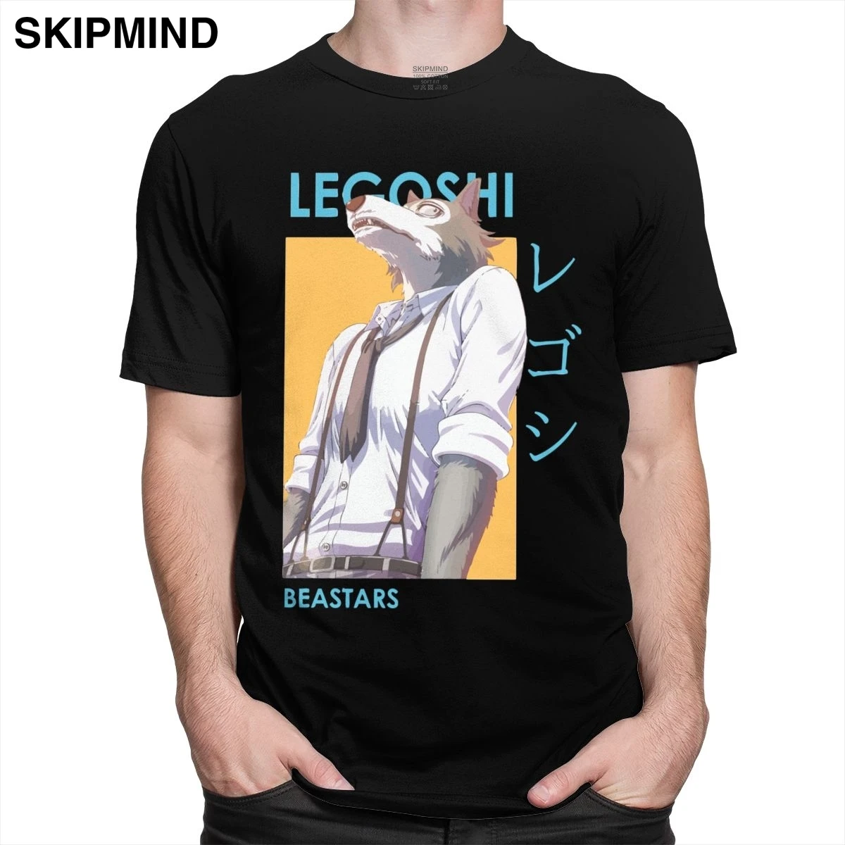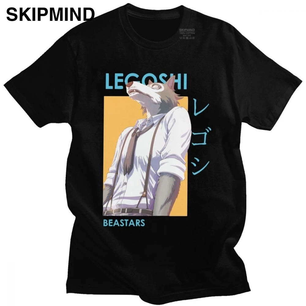 Футболка Legoshi Beastars мужская из чистого хлопка, топ с круглым вырезом и коротким рукавом, Повседневная рубашка с японским Аниме Манга, подарок