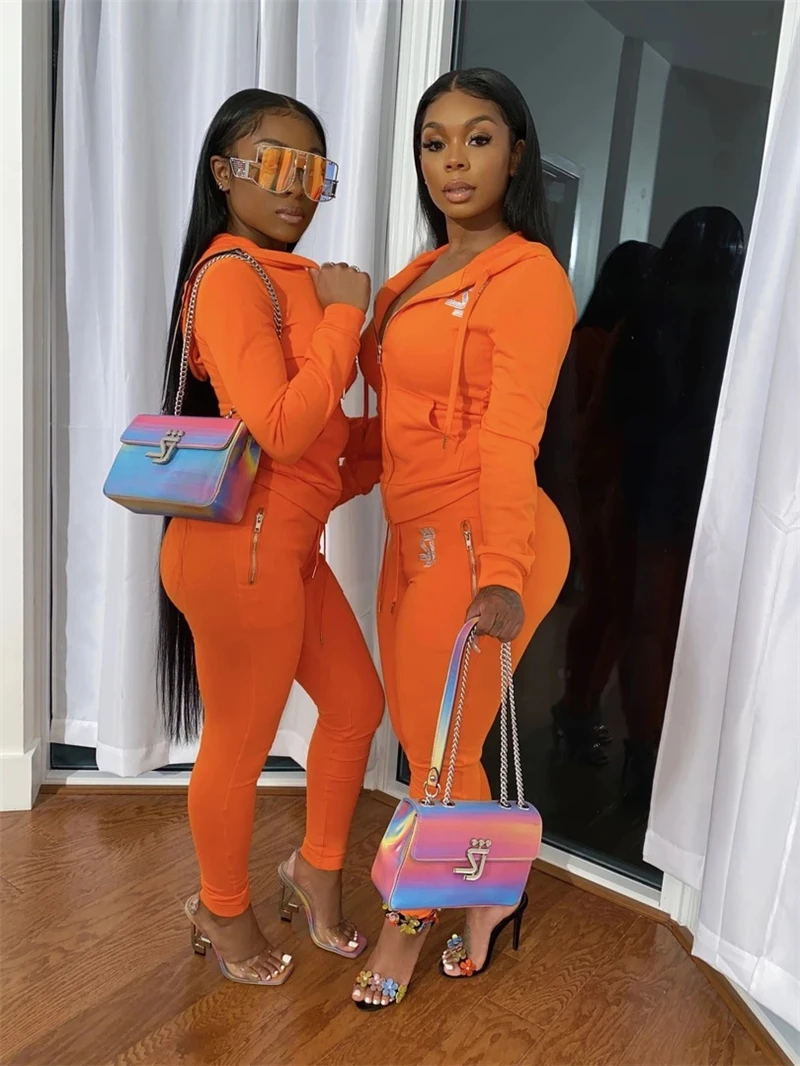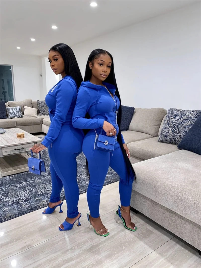 Однотонный спортивный костюм для женщин, комплект из двух предметов, осенняя одежда, толстовка на молнии, куртка, топ и брюки, спортивный костюм для бега, женская одежда