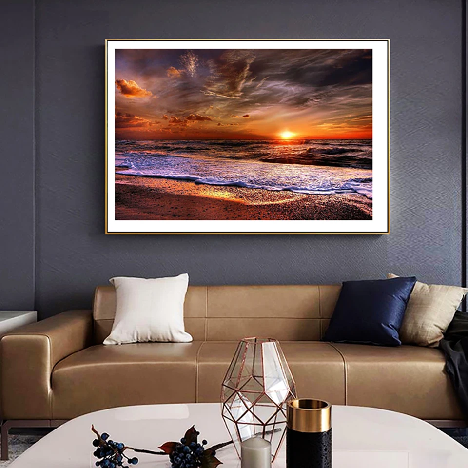 5D алмазная живопись сделай сам, картина с закатом, пейзажем, видом на море, полноразмернаякруглая Алмазная вышивка, Набор для вышивки крестиком, украшение для дома