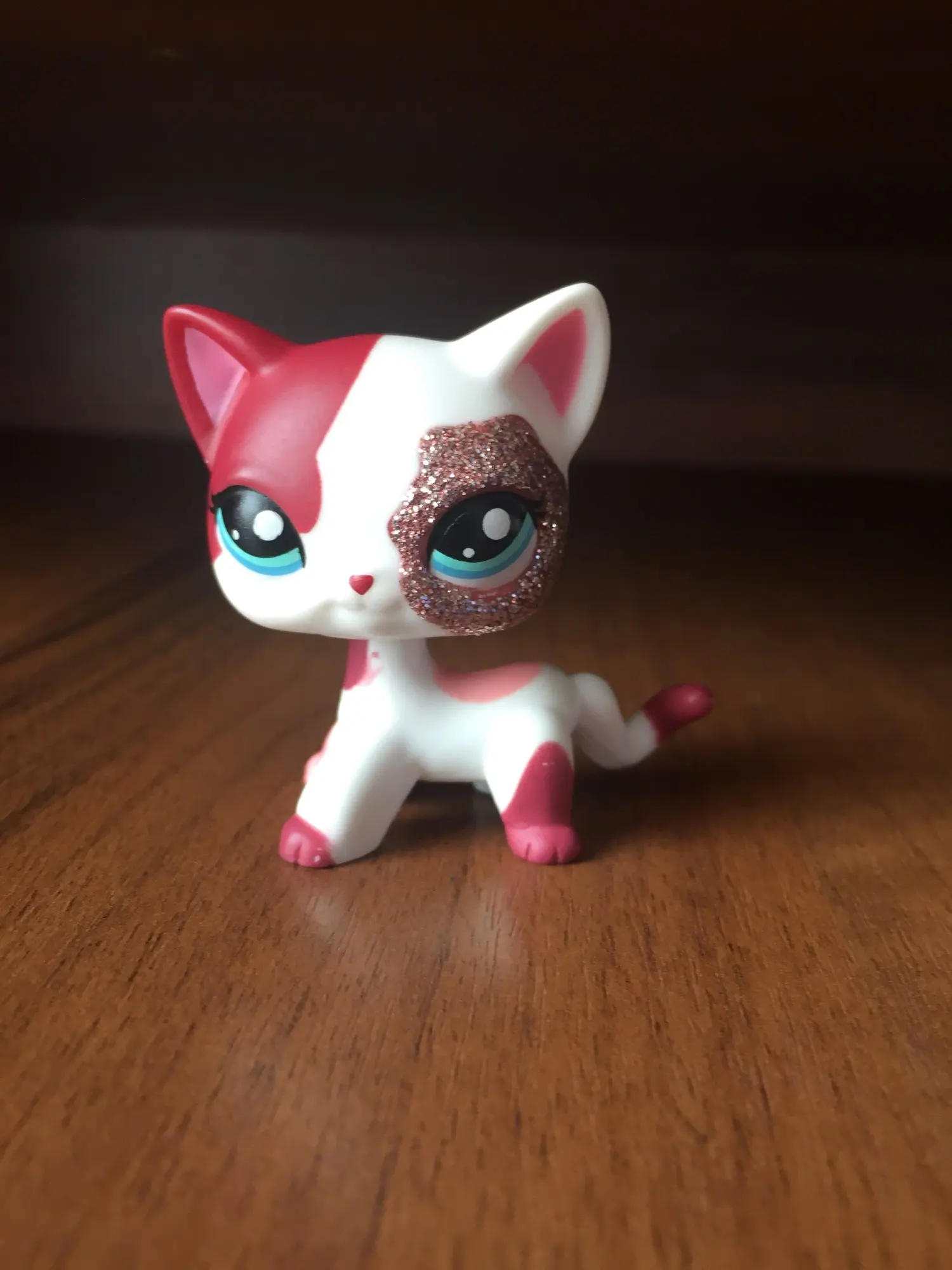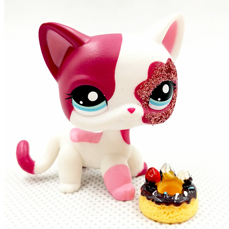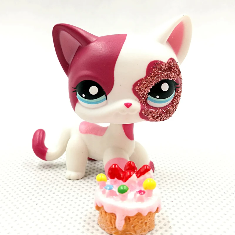 Игрушечная кошка lps, Короткошерстная Кошка с аксессуарами, блестящие глаза, розовый, редкий, белый котенок, подарок для детей, #2291