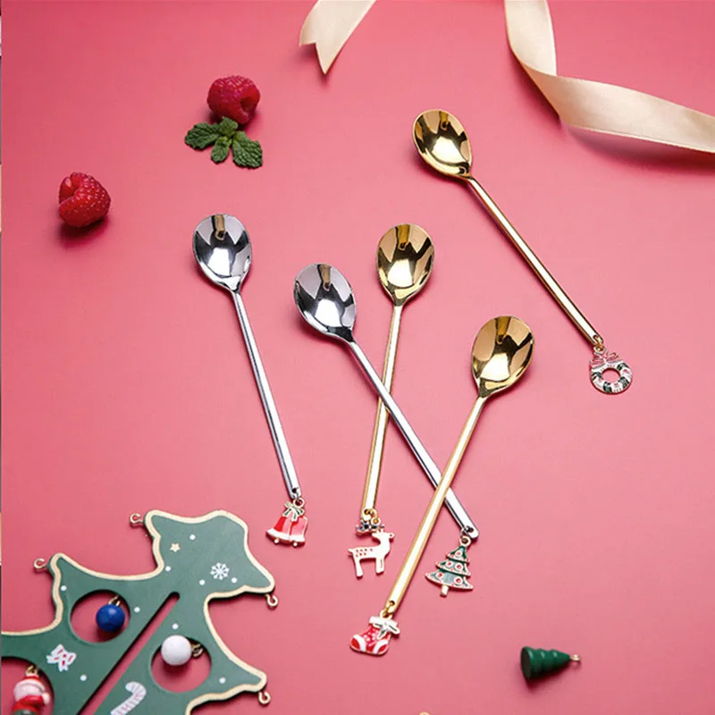 Кофейная ложка из нержавеющей стали с длинной ручкой, Рождественское украшение, Рождество Рождественские украшения для подарков для дома, Рождество, Новый год