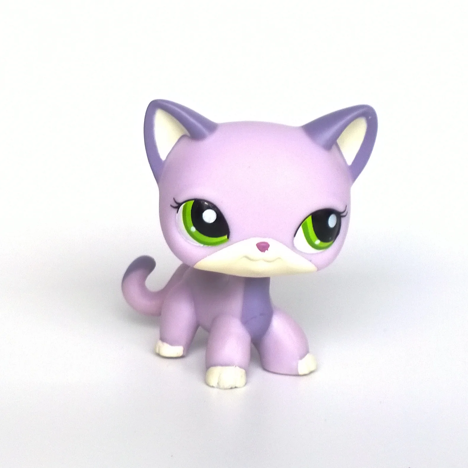 Lps кошка, игрушки для домашних животных, кошка #2094, стоячая сине-фиолетовая кошка с маленькими короткими волосами и зелеными глазами, подарок на Рождество для детей, старый оригинал