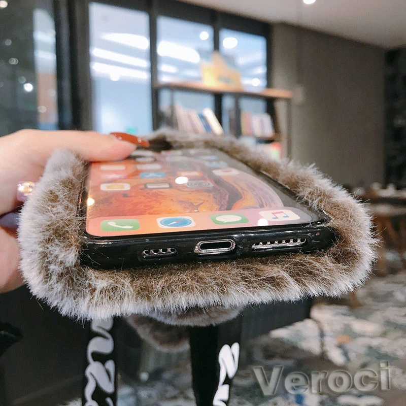 Симпатичный чехол из меха кролика панды для iPhone X XS MAX XR 11 1...