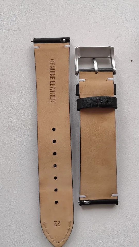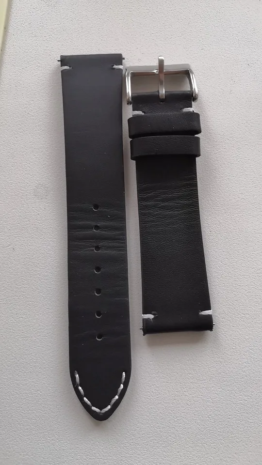 Красивая кожа, выглядит как кожа сквозная. Быстросъемные наконечники, очень приятно! Для меня отсутствует только 21 мм ремешок для часов в этом точном стиле и качестве. (Я знаю, что это непревзойденный размер, но у меня есть две часы в этом размере, которые жаждут немного универсальности)