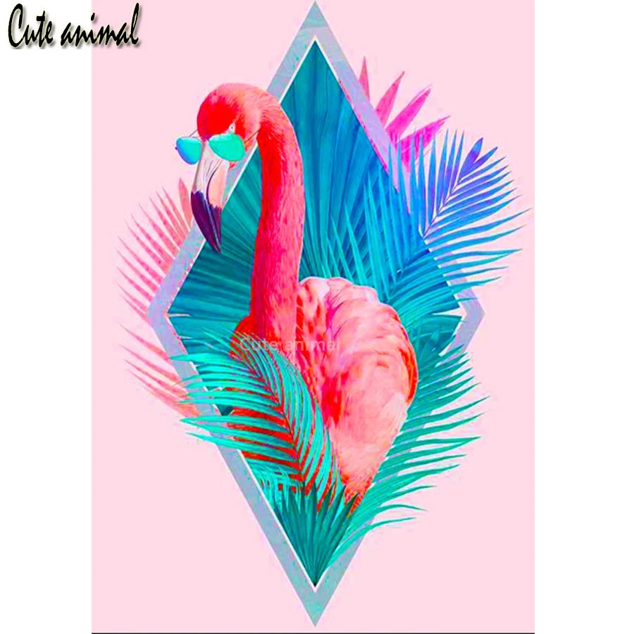 Полностью квадратная круглая Алмазная картина, вышивка крестиком, Розовый фламинго, птица, лист, животное, 5D, сделай сам, стразы, алмазная вышивка, мозаика