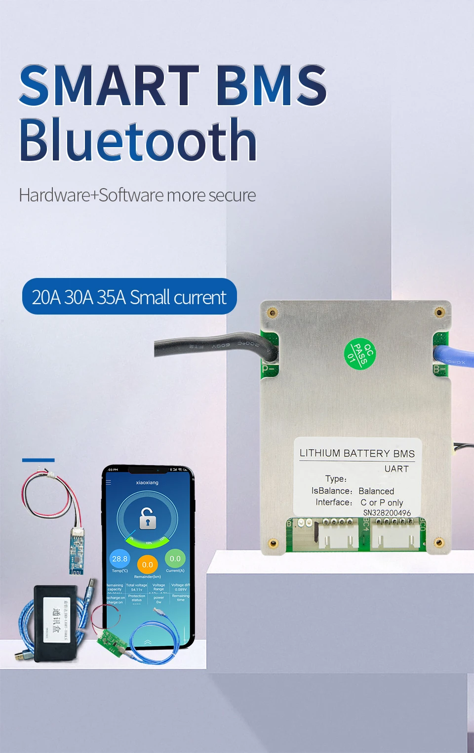 3s Li-ion 20A 30A 35A smart bms может быть применен к литиевым батареям с различными химическими свойствами, такими как литий-ионный, литий-полимерный. Литий-железо фосфат и т. Д. Защитная панель имеет сильную грузоподъемность и максимальный непрерывный ток разряда может достигать 35А.• Защита серии 3s• Различные функции защиты для зарядки и разрядки• Разрядка перегрузки по току, защита от короткого замыкания функциональные процессы оборудования• Перенапряжение, понижение напряжения, температура, защита от перегрузки функциональные процессы программного обеспечения• Точный расчет SOC с функцией SOC автоматического обучения• Разрядка перегрузки по току, защита от короткого замыкания функциональные процессы оборудования• Оснащен модулем Bluetooth с поддержкой связи UART \ 485