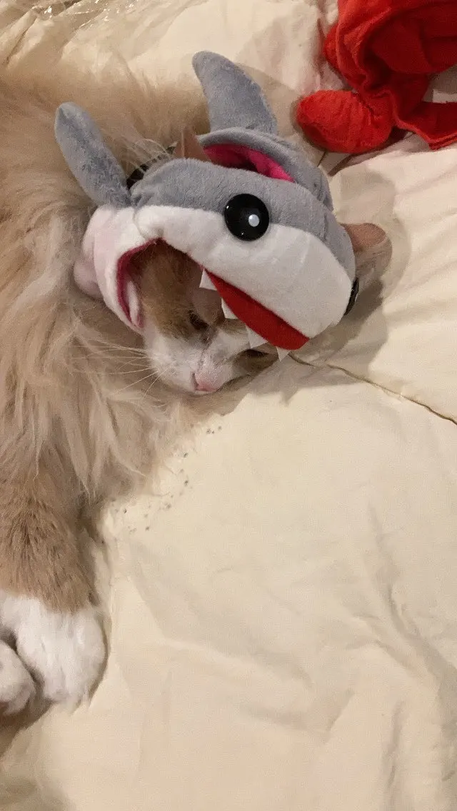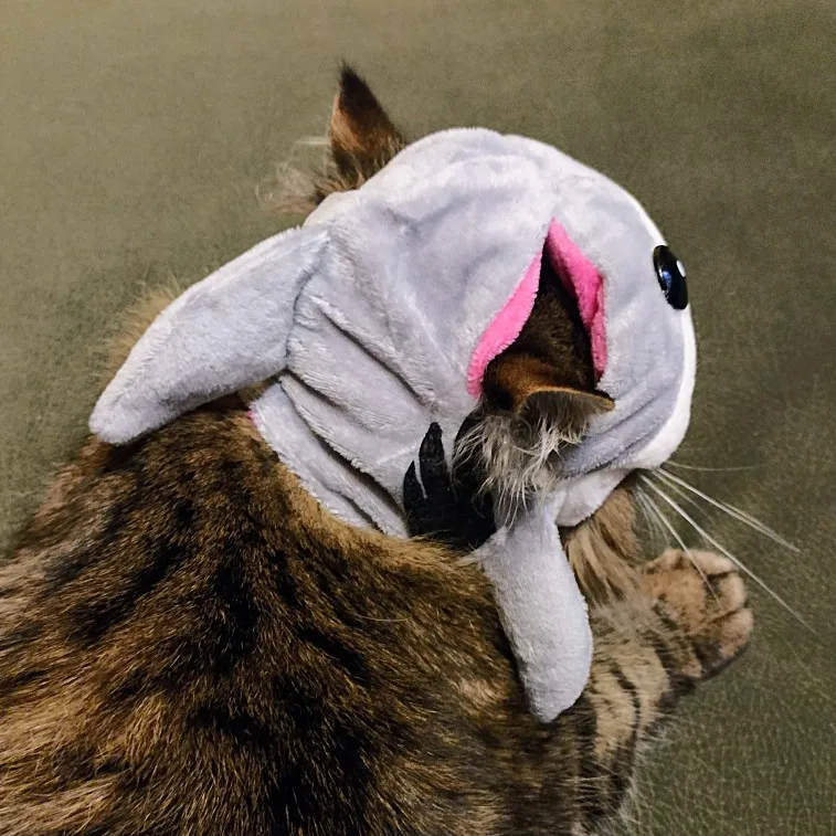 Мой кот достаточно крупный и пушистый. Он зимой носит свитера или майки, чтоб согреться. Шапочка для него была новым аксессуаром, который явно ему не понравился с первого раза. Но с каждым днём кот сопротивляется всё меньше и, думаю, через неделю мы сможем провести спокойно фотосессию. Конечно, приучать к одежде животное нужно с самого раннего возраста, преподнося это как элемент игры. Котята быстро привыкают к обновкам, а если дело происходит зимой, то «раз и навсегда» понимают роль наряда. Шапочка мне очень понравились, настоящая акула )) - плюшевая ткань с двух сторон, мягкие ушки, утолщения на лбу, красивого цвета. Застёгивается на липучку под головой. Это позволяет отрегулировать шапочку по объёму и надёжно закрепить на голове кота. К покупке рекомендую. Это очень милый и прикольный аксессуар. Отличный товар и продавец.