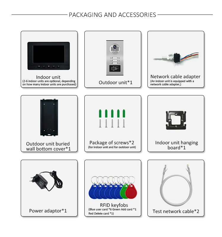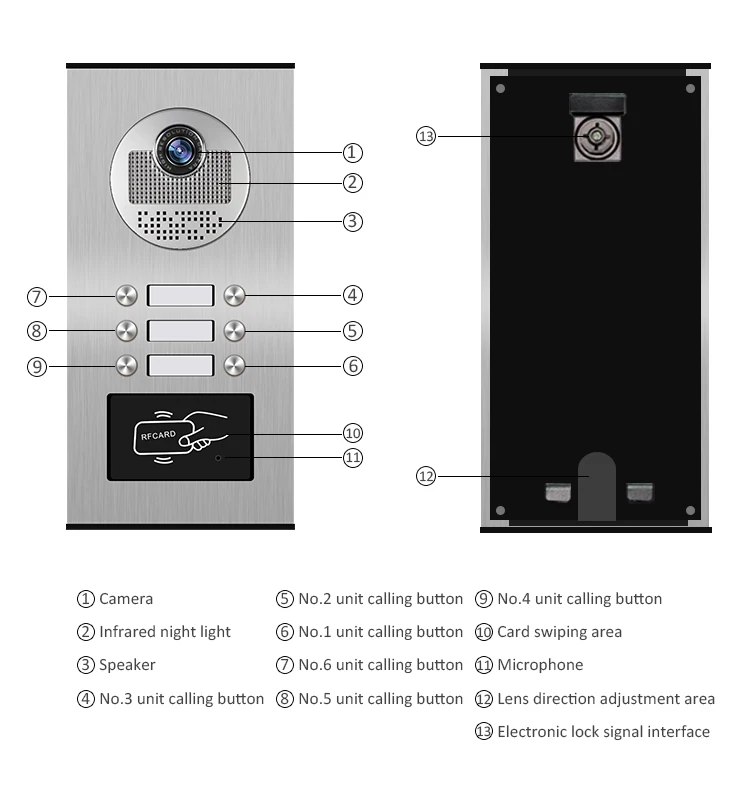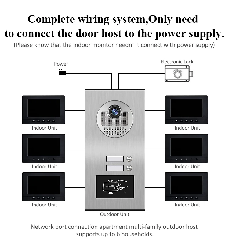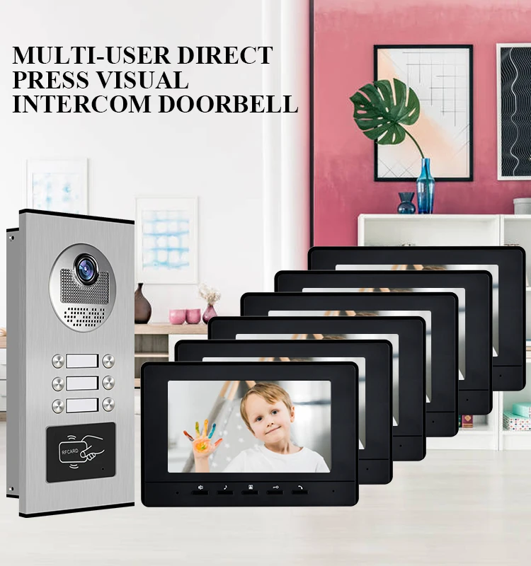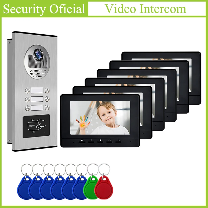 Видеодомофон с экраном 7 дюймов, 6 мониторов и 1 дверной Звонок