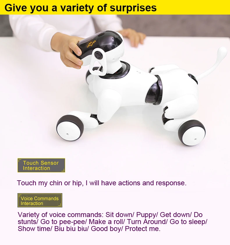Веселая, интерактивная игра-Эта очаровательная игрушка с дистанционным управлением щенок умеет петь и танцевать. С несколькими режимами игры, включая режим обучения альфа-ставке/цифре, эта игрушка отлично подходит для детей всех возрастов! Простой в использовании ручной пульт дистанционного управления-каждый беспроводной пульт дистанционного управления для щенка поставляется с контроллером дальнего действия, который позволяет тренироваться и направлять щенка на расстояние до 35 футов! Поставляется с USB-разъемом, так что вы можете получить часы удовольствия, связывания домашних животных и обучения для безграничного веселья как для мальчиков, так и для девочек. Идеальный подарок на день рождения или праздник-эти интерактивные щенки на пульте дистанционного управления сделаны для детей в возрасте от 2 до 7 лет, которые любят технологии и собачки! Гарантированные улыбки-Мы знаем, что наша продукция будет активом в любую игровую классную комнату или игрушечную комнату и мы стоим за качеством нашей продукции. Эти игрушки поставляются стандартно с годовой полной гарантией на качество изготовления.