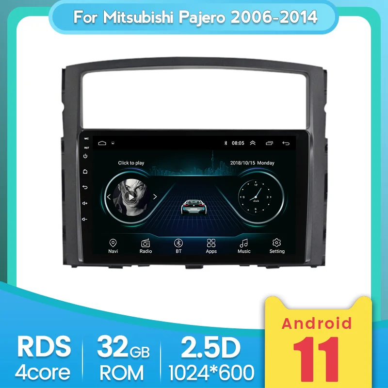 Автомагнитола 2 Din, мультимедийный видеоплеер с GPS, 2 + 32 ГБ, Android IPS BT для Mitsubishi Pajero 4 V80 V90 2006 - 2014