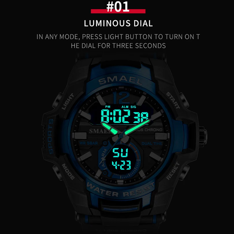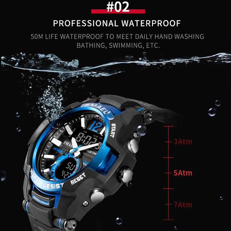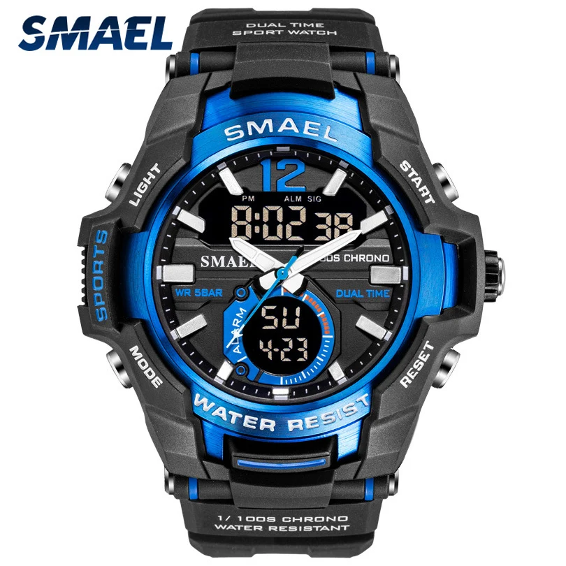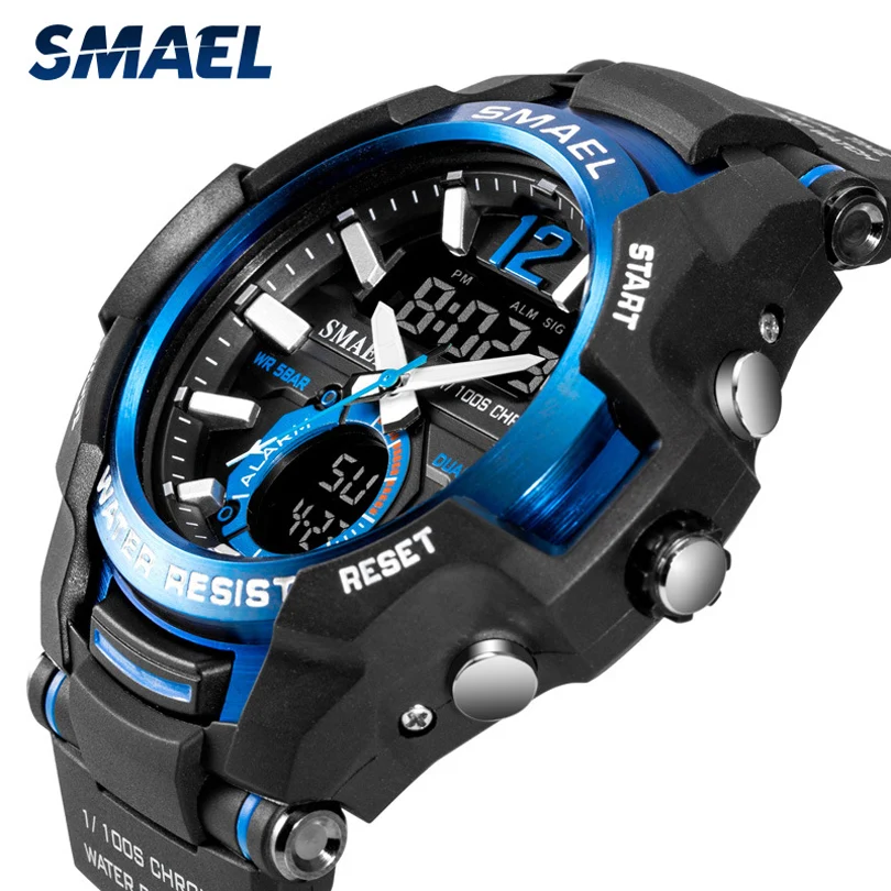 Часы наручные SMAEL Мужские кварцевые Светодиодные, люксовые брендовые цифровые модные супер крутые, водонепроницаемость 50 м, 1805