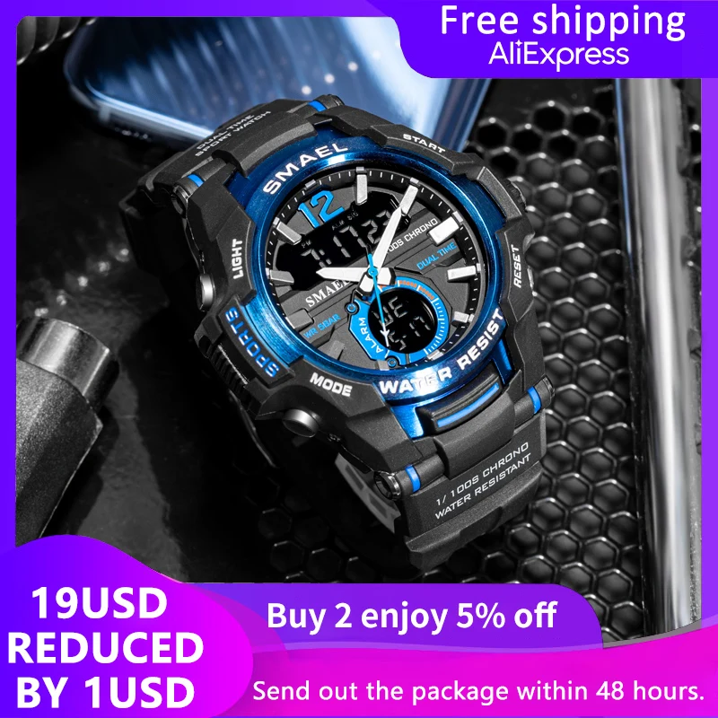 Мужские спортивные часы бренда SMAEL, водонепроницаемые до 50 м светодиодные цифровые часы 1805, суперкрутые Модные кварцевые часы, мужские часы