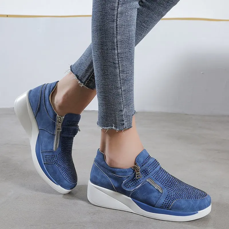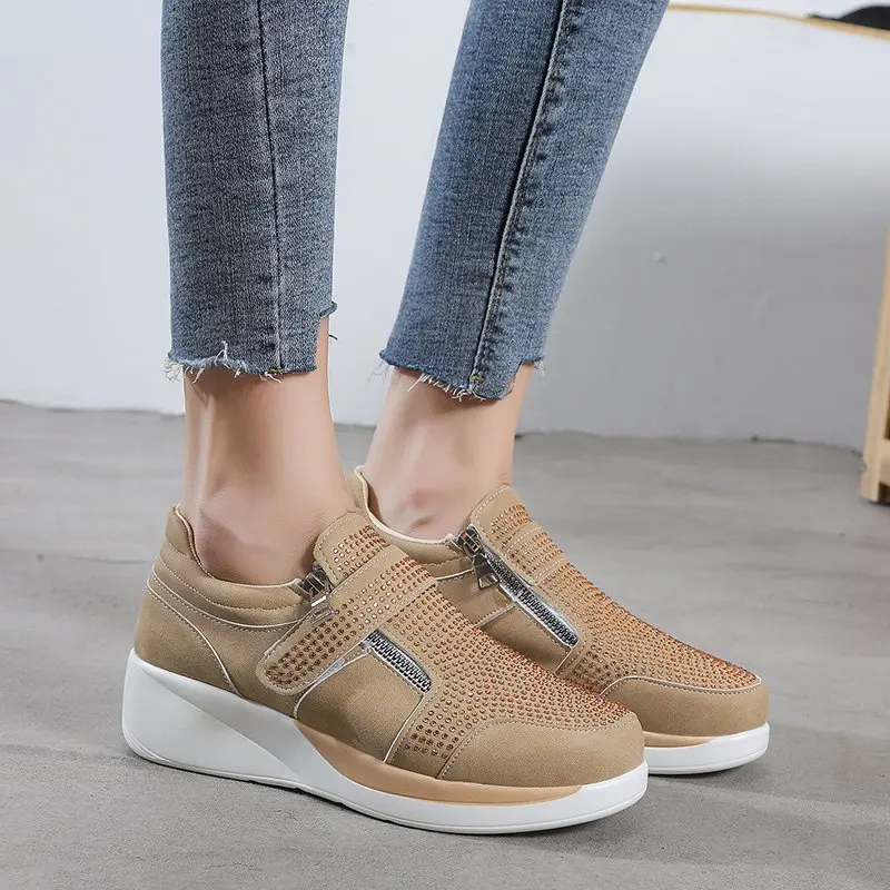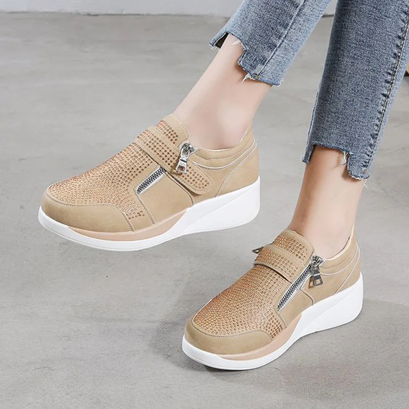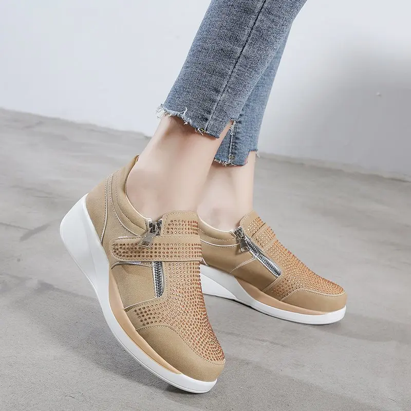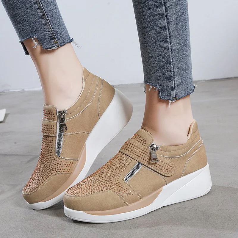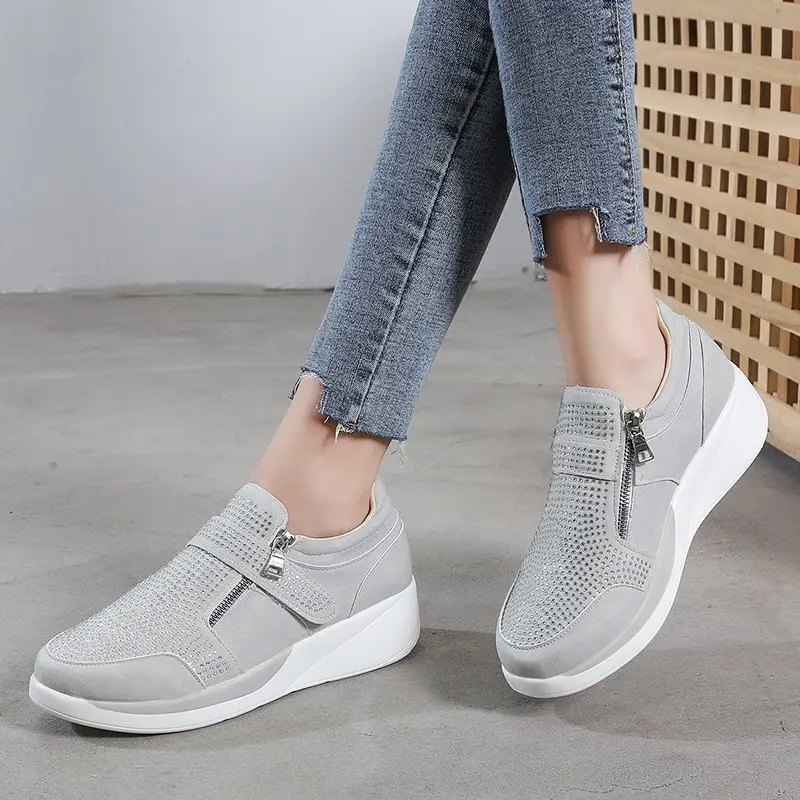 Кроссовки женские на танкетке, повседневная спортивная обувь на плоской подошве, с блестящими кристаллами, на молнии, высокие массивные, для отдыха, большие размеры, 8620C, зима-осень