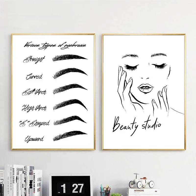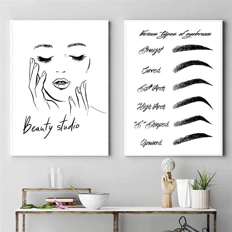 Холст с изображением бровей, черно-белая красивая девушка, художественная картина, макияж, печать и постер для комнаты девочки, домашний декор HD3001