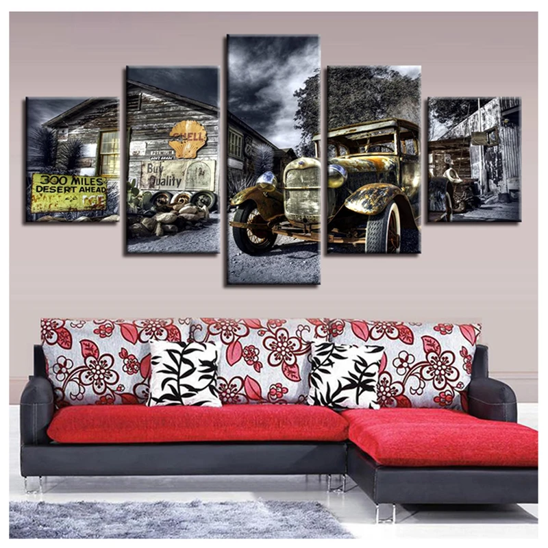 5 панель старых автомобилей холст картины diy алмазная живопись камни в форме ромба круглая мозаичная картина, выполненная в технике алмазной вышивки пейзаж арт stickersZP-3985