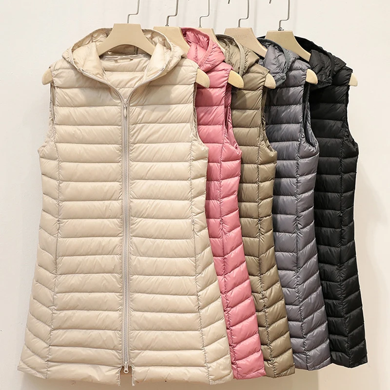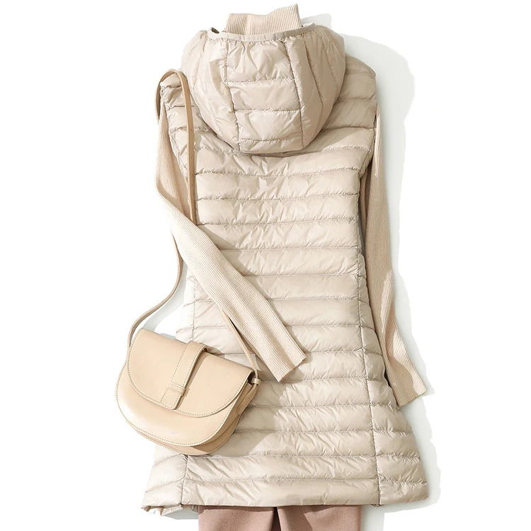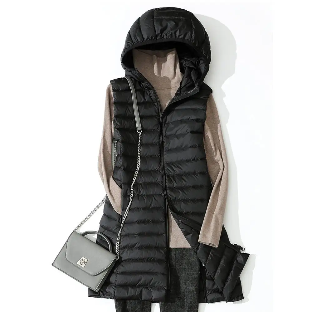 Женский Длинный жилет без рукавов, ультрасветильник пуховик с капюшоном, пальто на утином пуху для осени и зимы