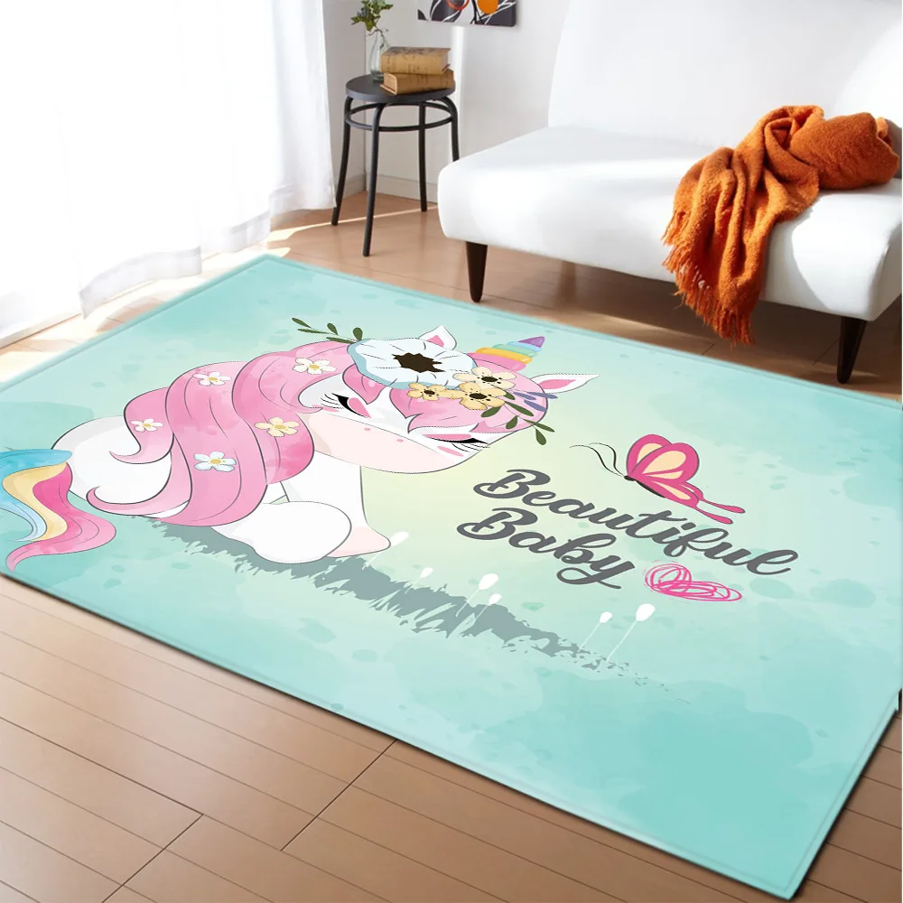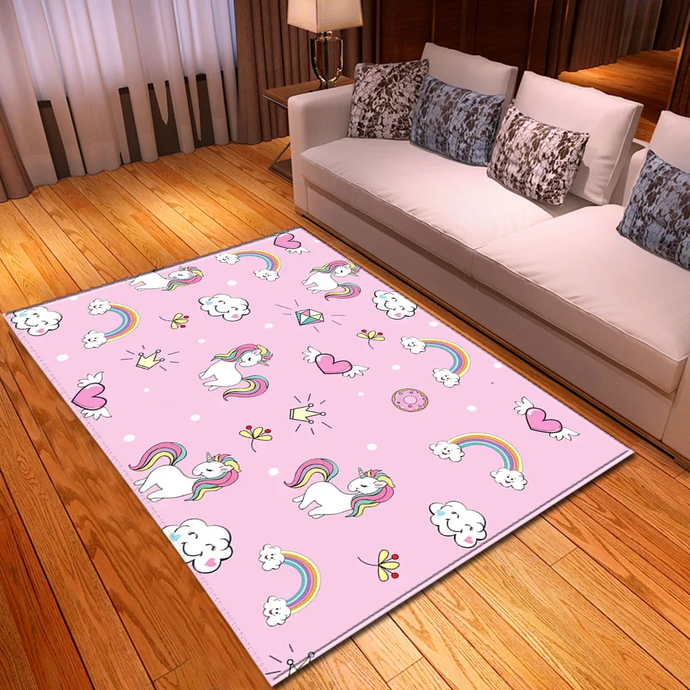 Новый 3D Печатный мультяшный Единорог детские коврики для гостиной спальни коврик для ползания для детской комнаты мягкий фланелевый домашний большой коврик