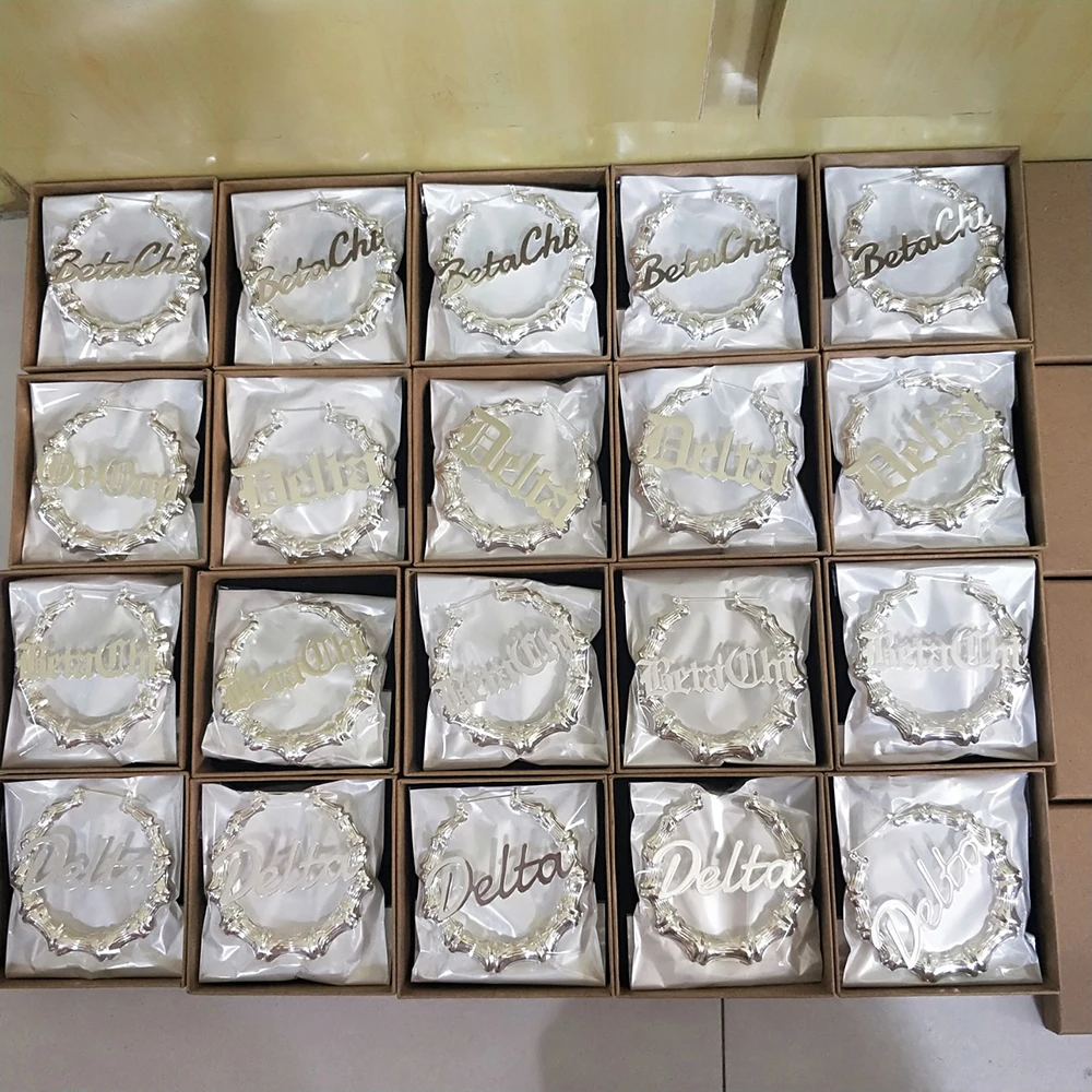 Серьги-кольца из нержавеющей стали 2020, с именем на заказ, в БАМБУКОВОМ стиле, с цифрами