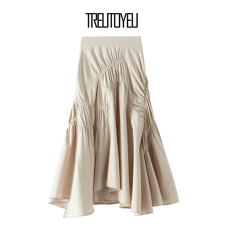 Treutoyeu дизайн Белый Черный плиссированная Макси Длинная юбка с Рюшами Юбки Русалки женские 2020 новое поступление
