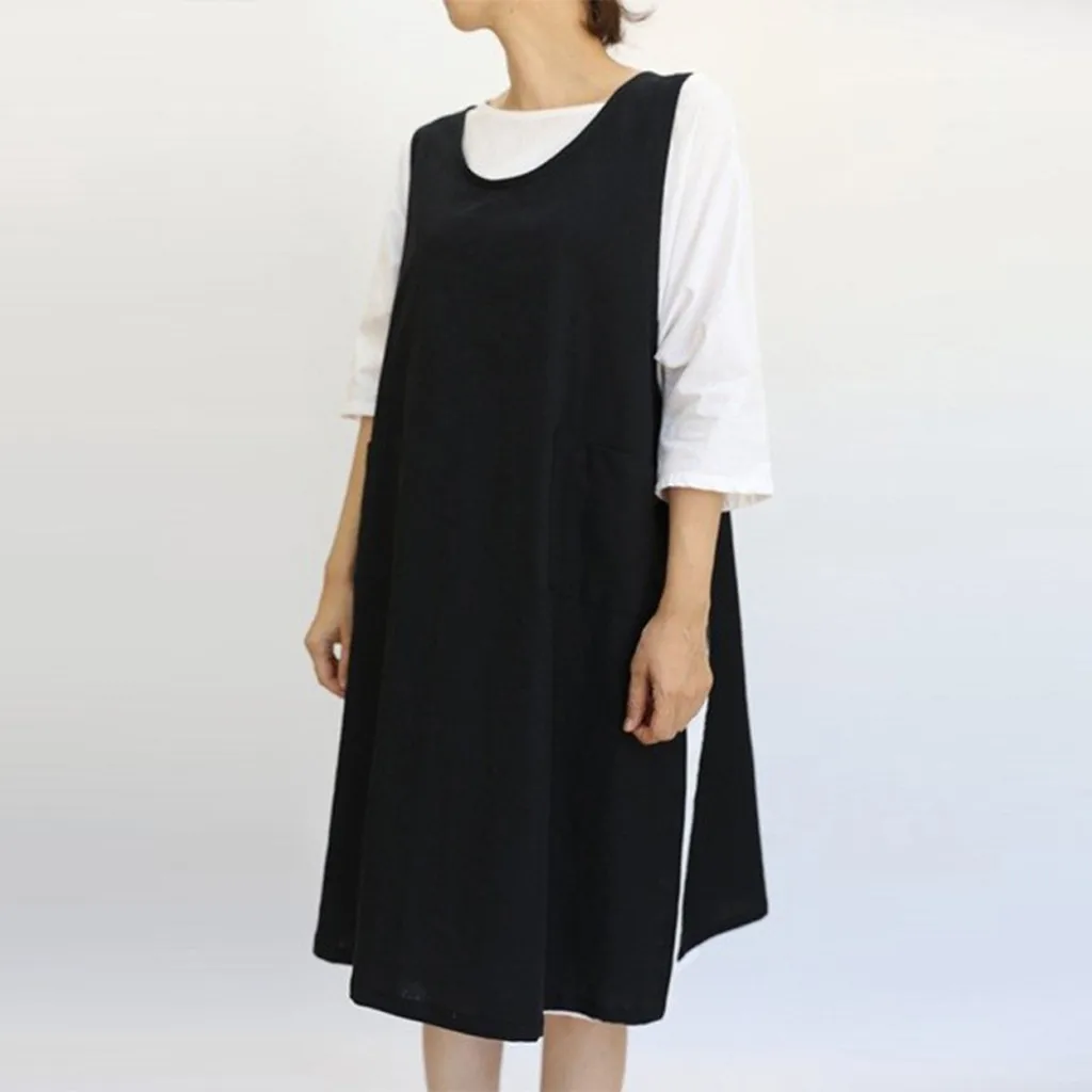 Сарафан хлопковый без рукавов, до колена, с карманами, в японском стиле