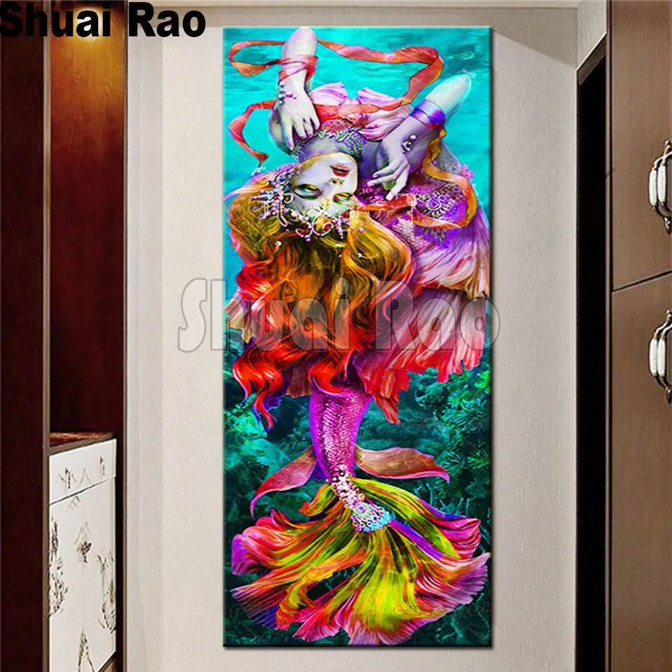 Большой размер, квадратная дрель, круглая дрель, фантазия, Русалка, мозаика, алмазная живопись, вышивка крестом, сделай сам, работа, вышивка, 5d пазл, подарок