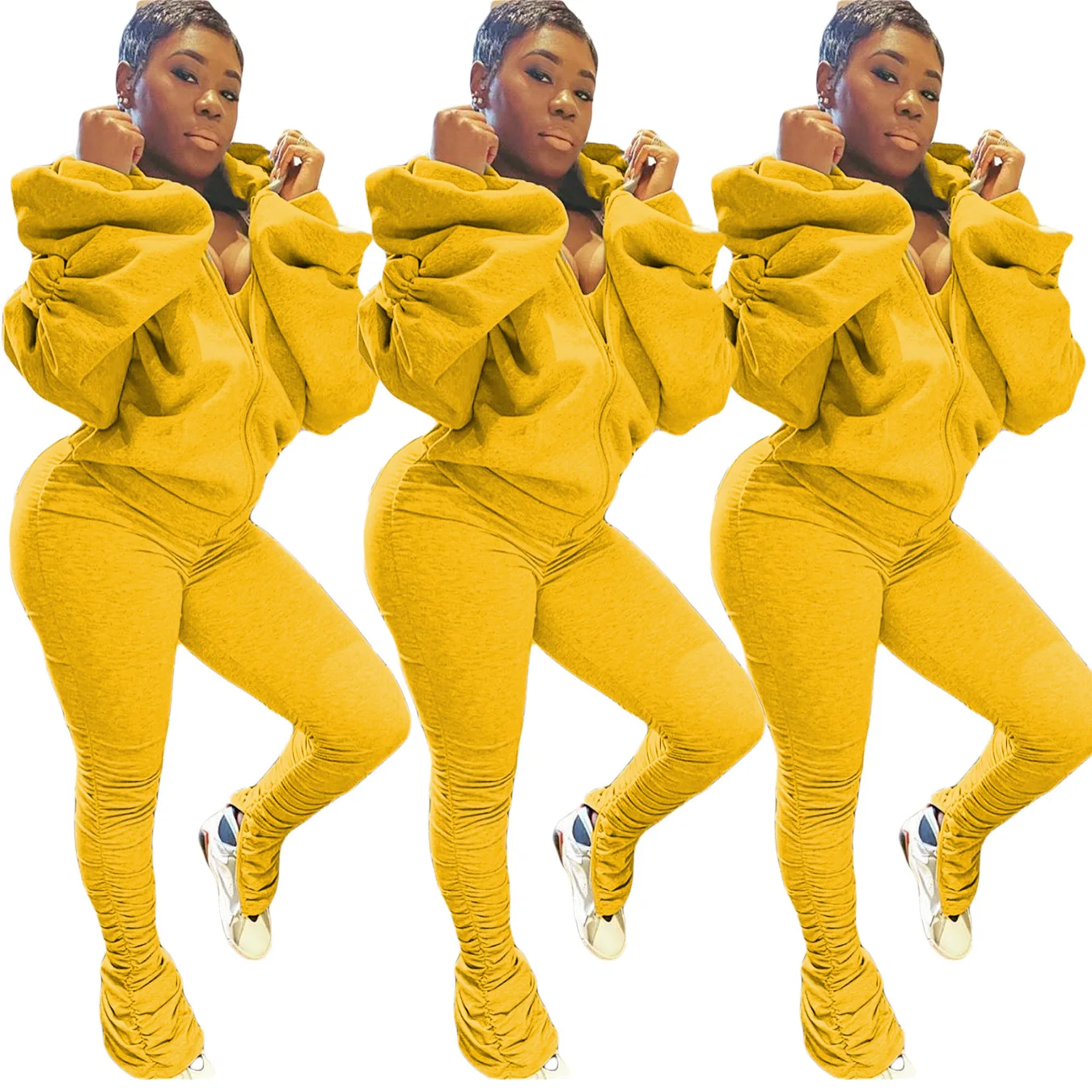 Женский комплект, с открытой спиной, с капюшоном, с пышными рукавами, топы, с разрезом, штаны, костюм, спортивная одежда, спортивный костюм, комплект из двух предметов, одежда для фитнеса
