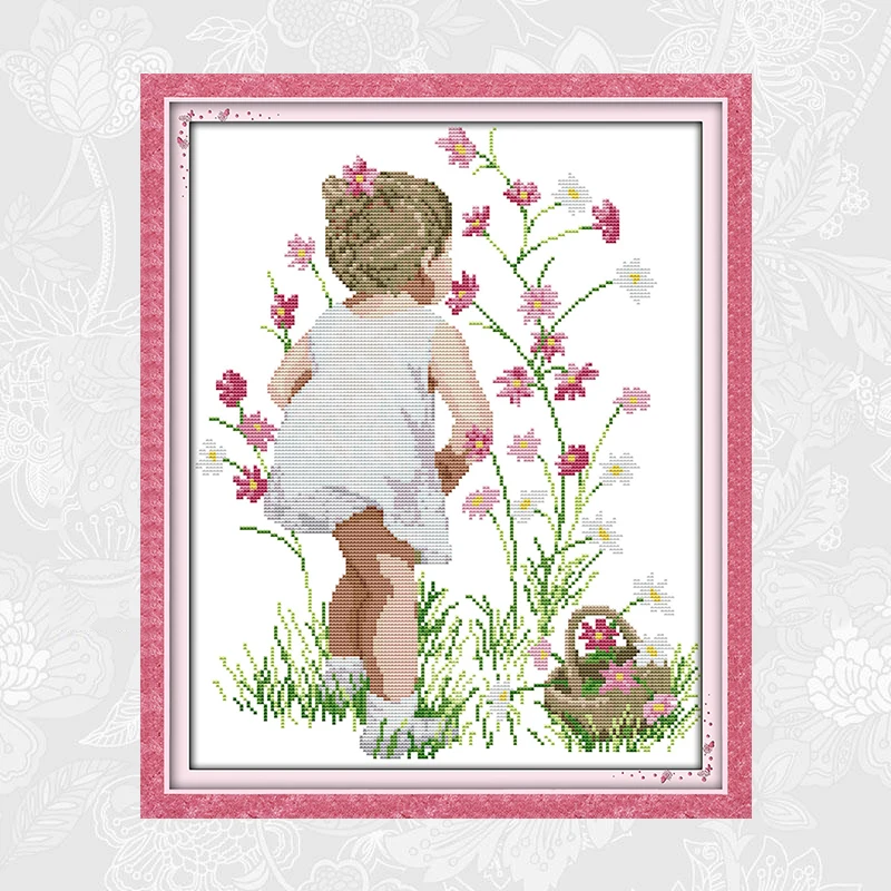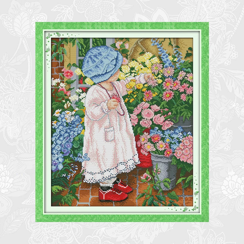 Молитва рядом с кроватью, вышивка крестиком, Счетный принт, холст, маленькая девочка, смотрящая цветы, наборы для вышивки крестиком, наборы для вышивки