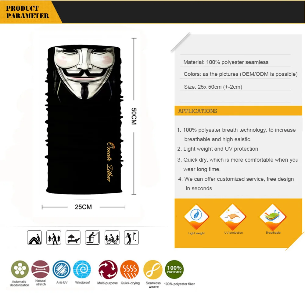 Бандана для мужчин 3D braga cuello Bufanda, маскировка анонимная, Хэллоуин, мотоциклетная маска-Балаклава, маска-Вендетта
