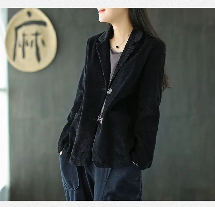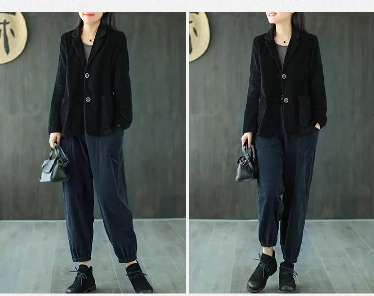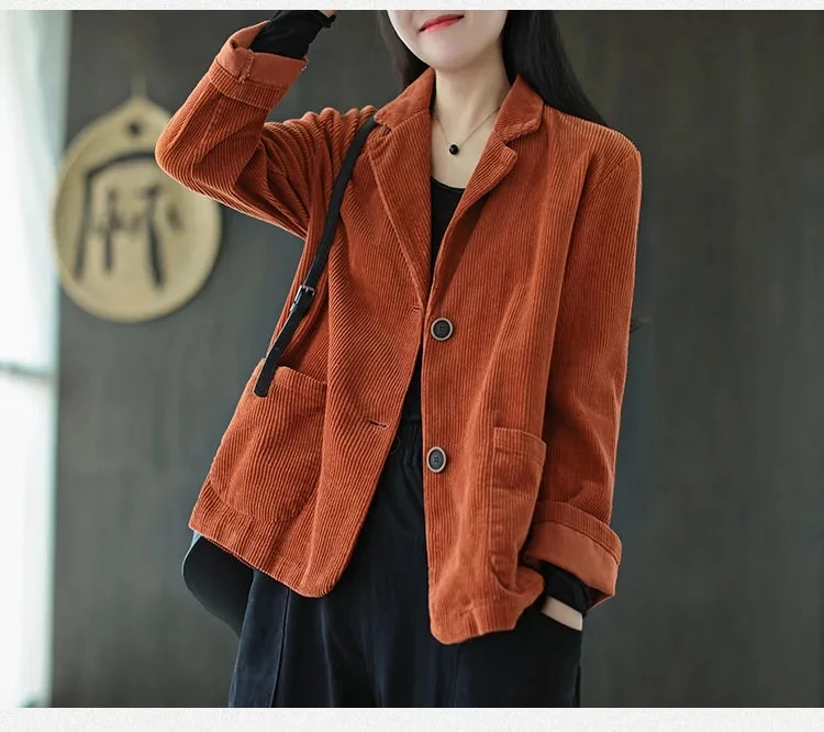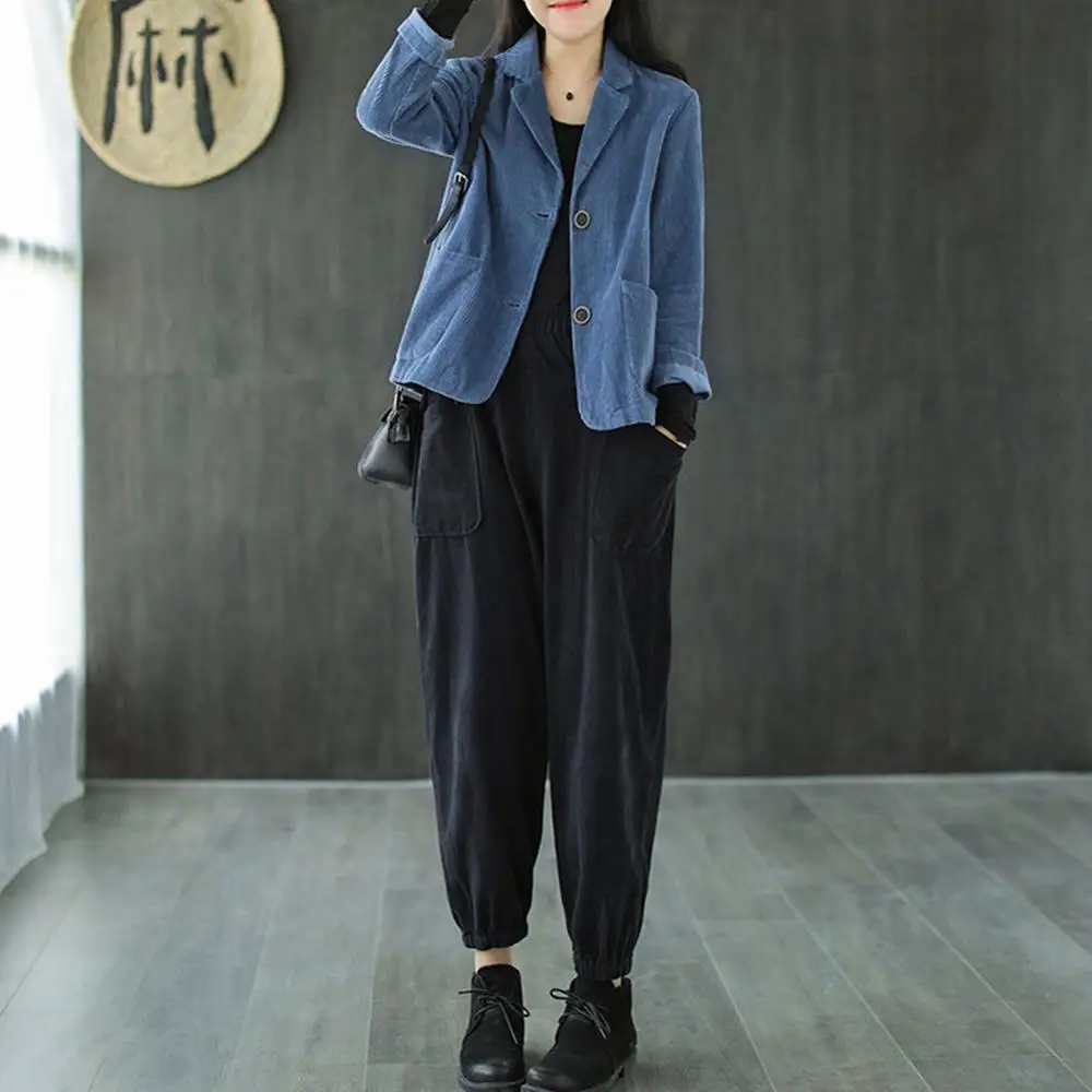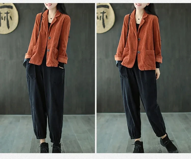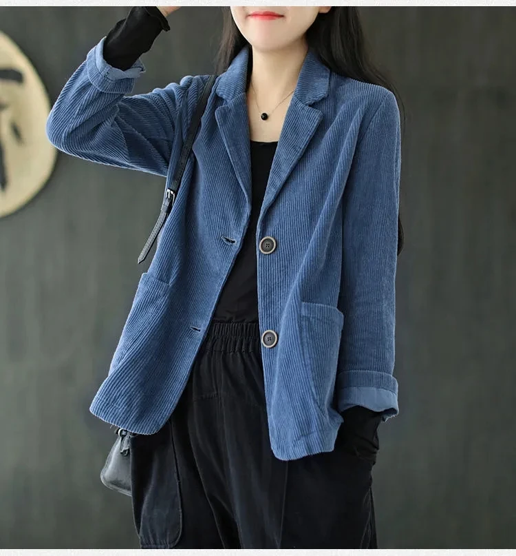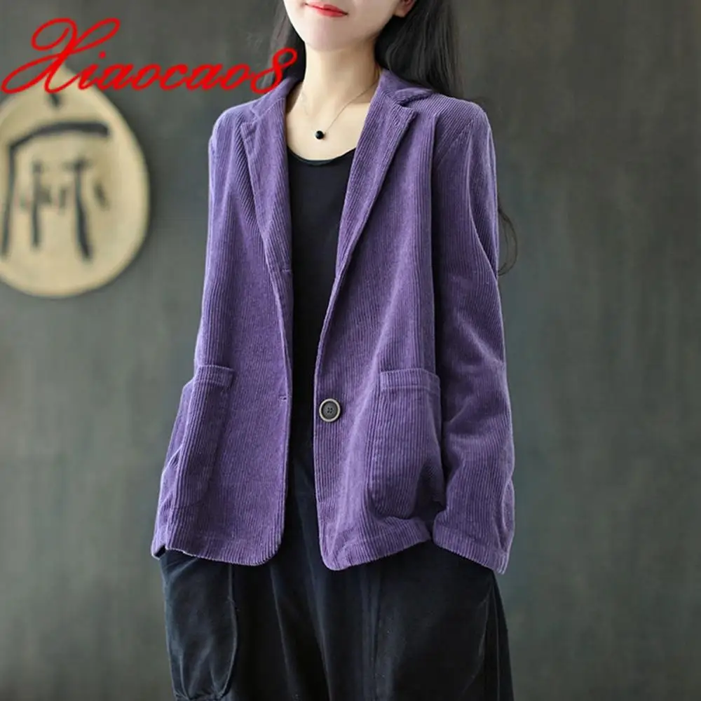 Однотонный вельветовый Повседневный Блейзер, Женский однобортный свободный костюм, куртка, пальто, женская одежда размера плюс размера, весна-осень