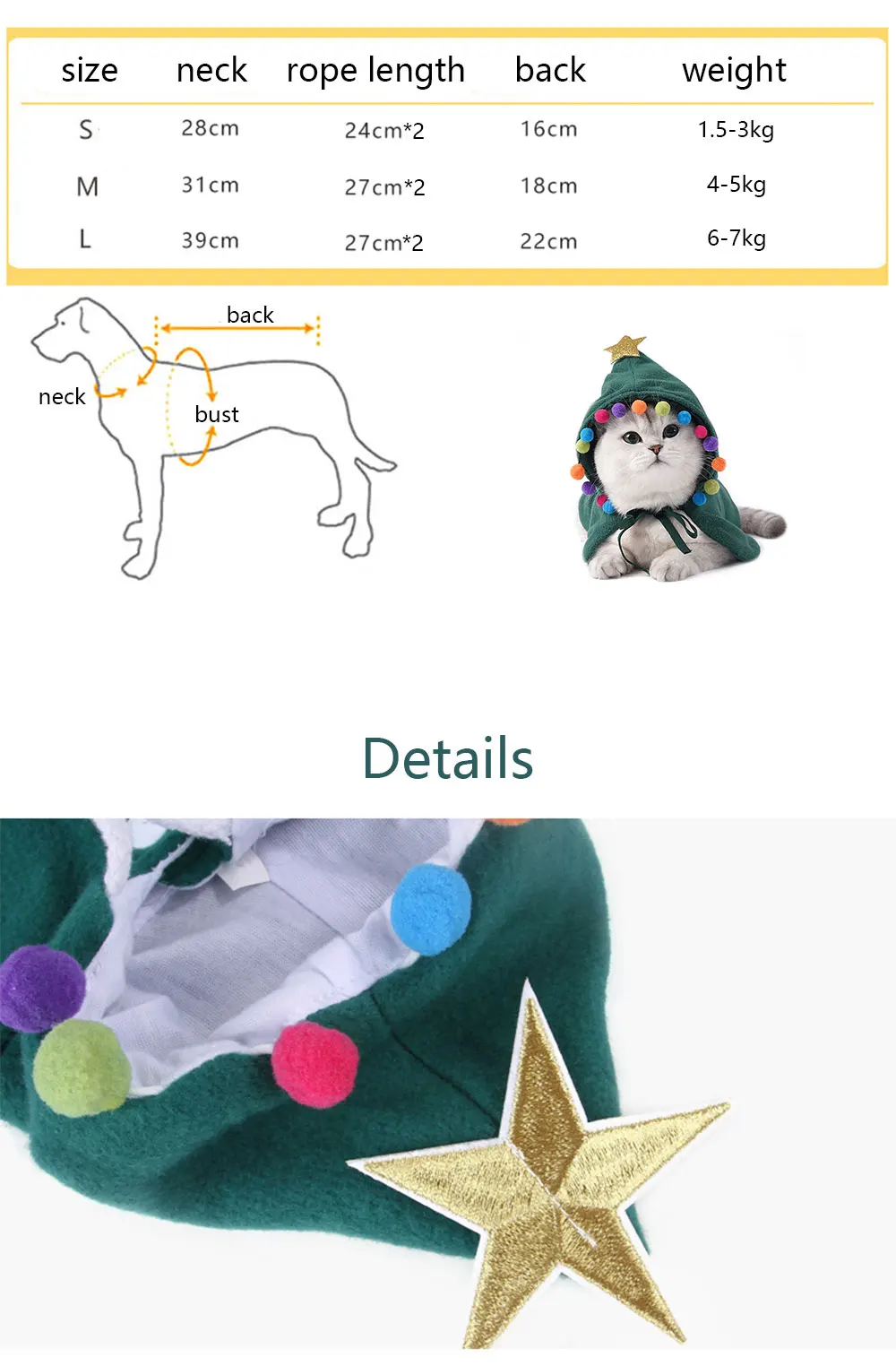 Рождественский костюм для домашних животных, кошек, собак, плащ, те...