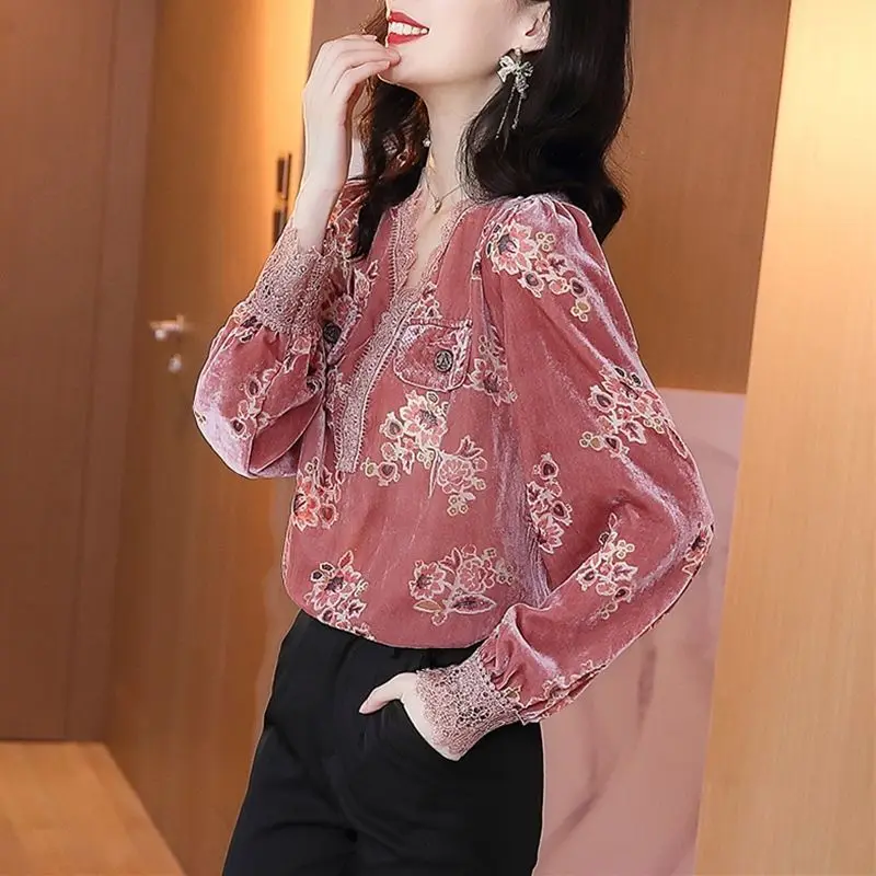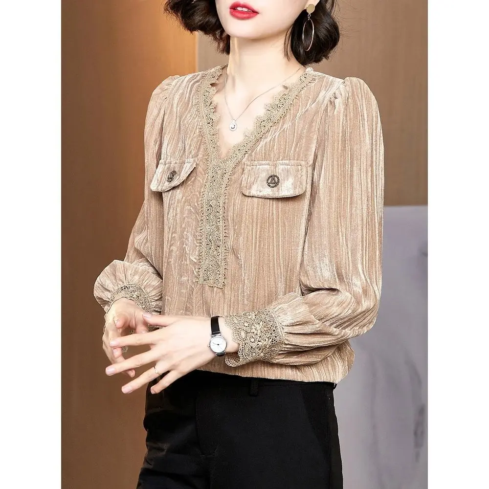 Блузка женская демисезонная с длинным рукавом и V-образным вырезом, DD9107, топы Pleuche