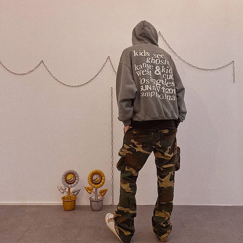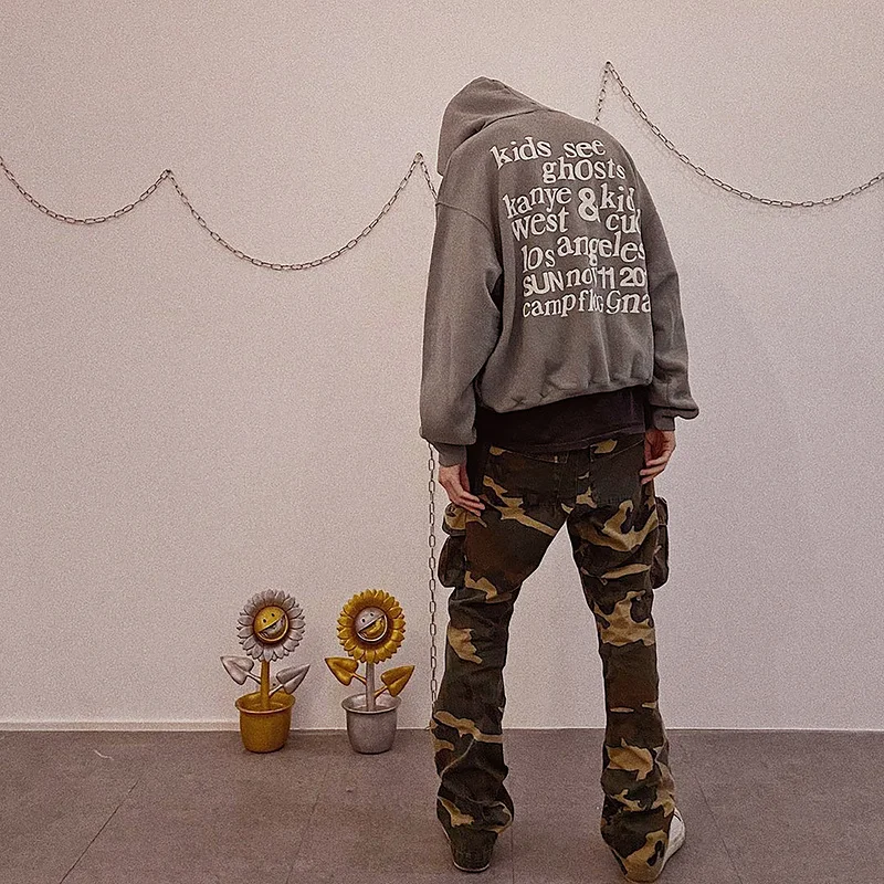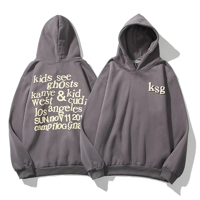 Серый женский и мужской свитшот с капюшоном Kanye West с надписью See Ghost, худи в стиле хип-хоп, Мужская толстовка, пуловер