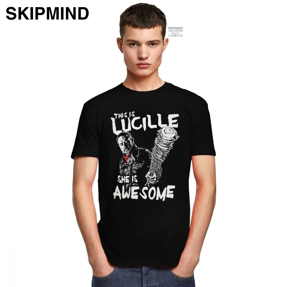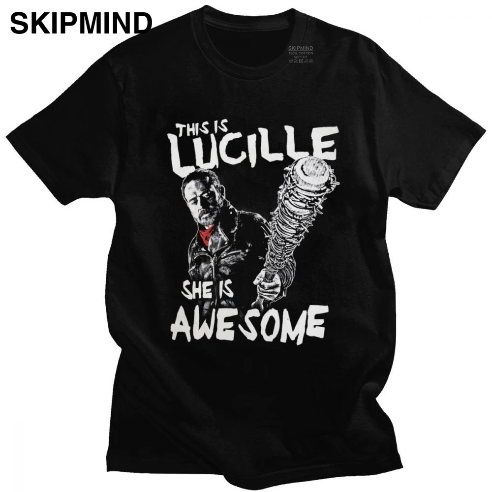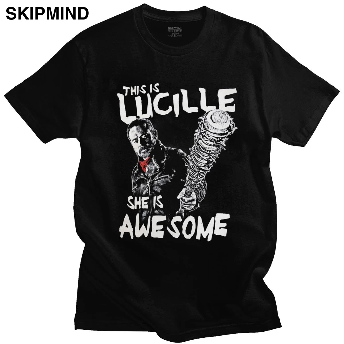 Мужская футболка в стиле ретро Ходячие мертвецы, из чистого хлопка, Люсиль, She is Awesome, футболка с коротким рукавом, Negan Zombie, топ, одежда для фанатов ТВ