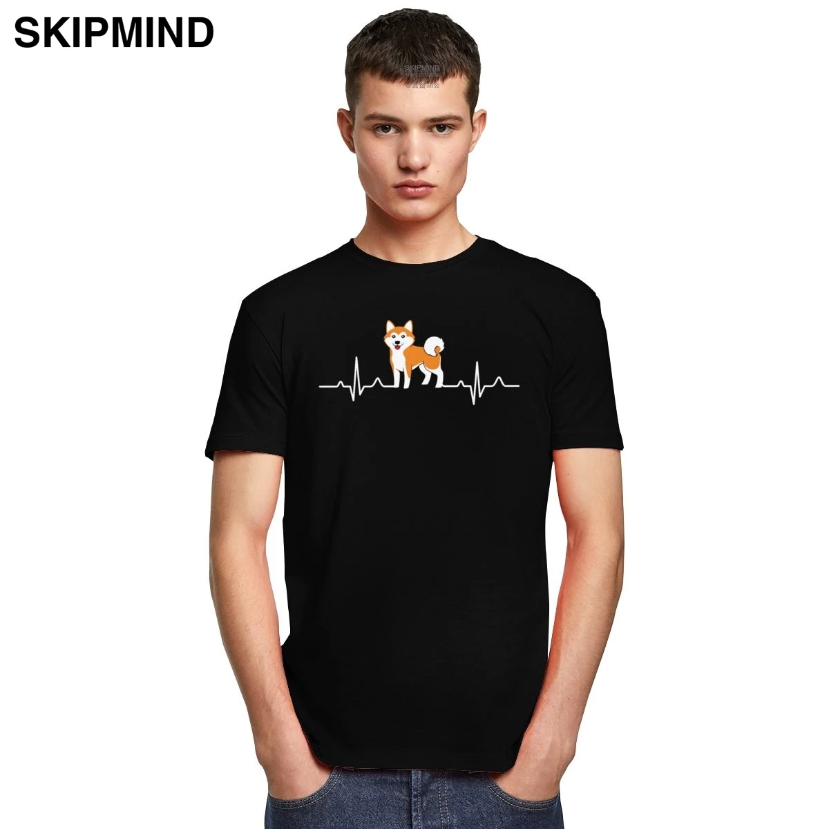 Футболка Kawaii с японской Шиба-ину, Мужская хлопковая футболка с изображением собаки сердцебиения, Милая футболка с круглым вырезом и коротким рукавом, модная повседневная футболка, подарок