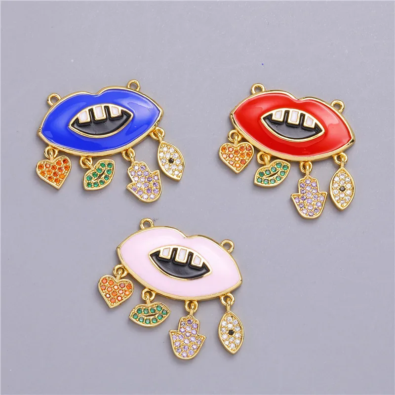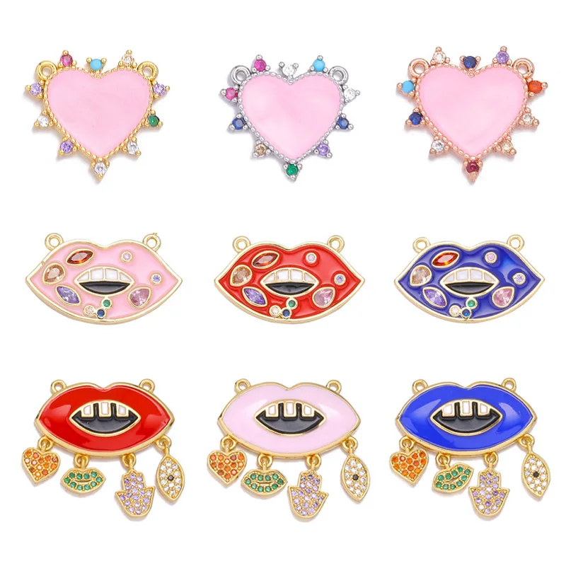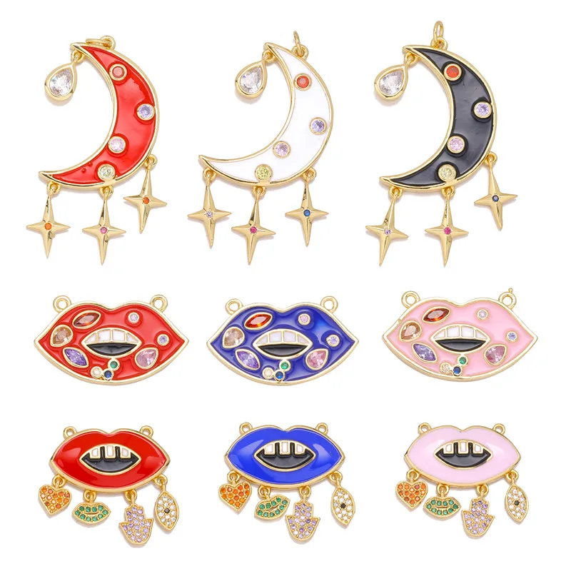 Ювелирные изделия ручной работы Juya, разноцветные эмалевые подвески в виде губ, полумесяца, звезды, сглаза для модных подвесок, Розария, материалы для изготовления ювелирных изделий