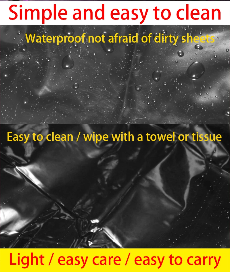Дизайн большого размера, гладкая и блестящая резиновая простыня подходит на кровать большого размера с установленными угламиВодонепроницаемая конструкция защищает кровать от всех люков и жидкостей, она очищает с мылом и водой.